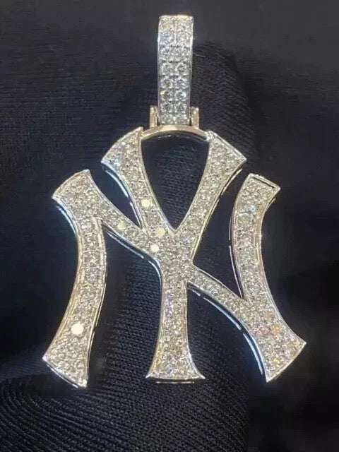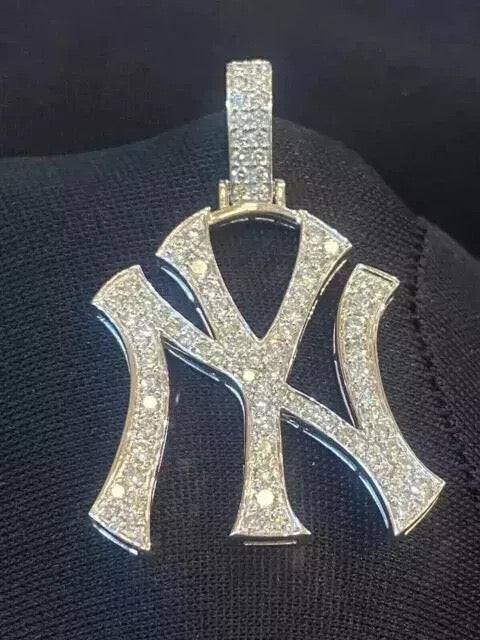 4CT Round Cut Lab Created Diamond Men's NY Shape Pendant 14K Yellow Gold Finish