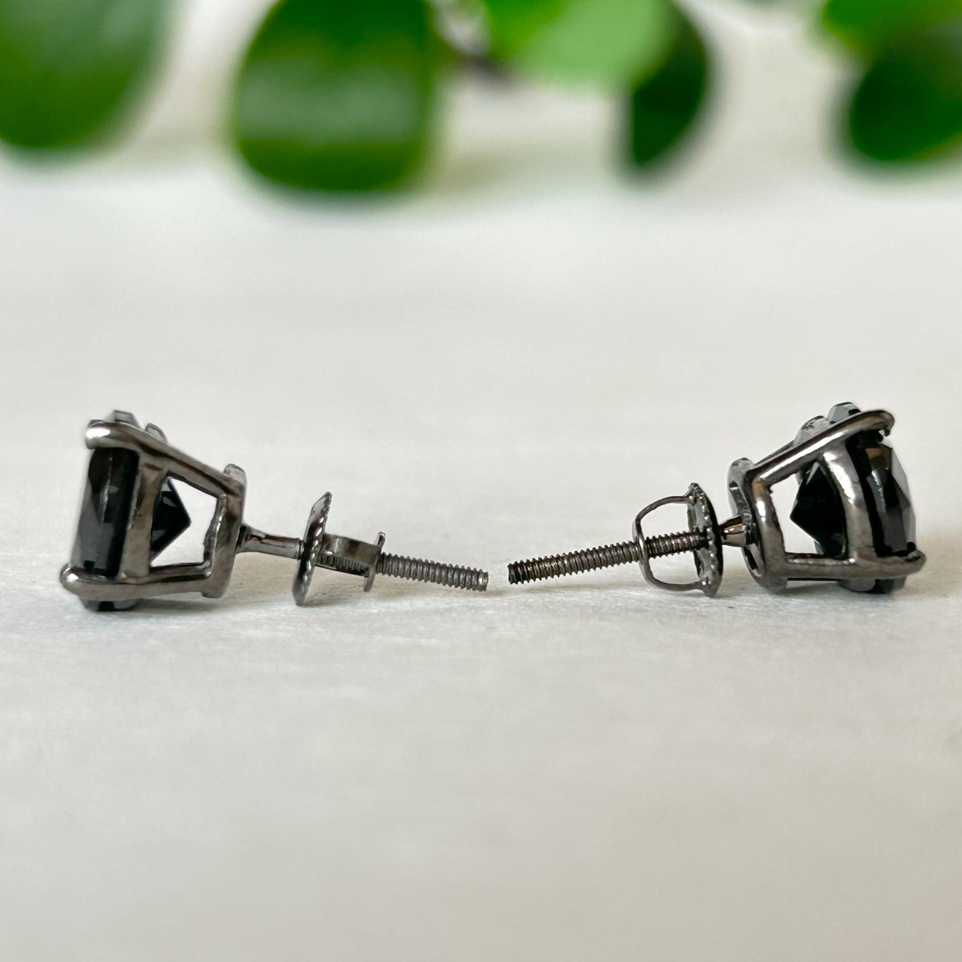 Black Diamond Stud Earrings - Screw Back Earrings