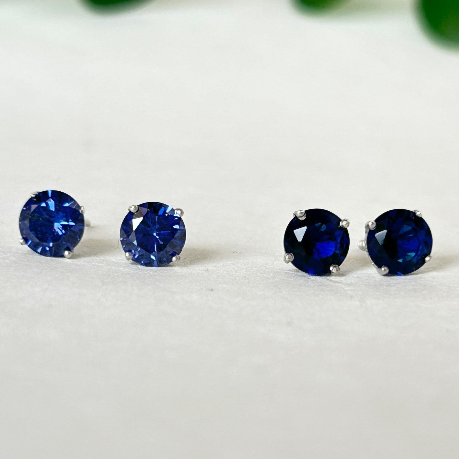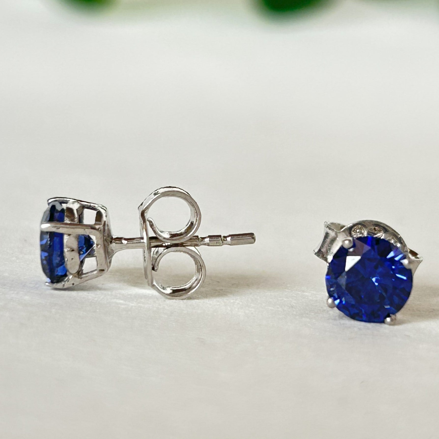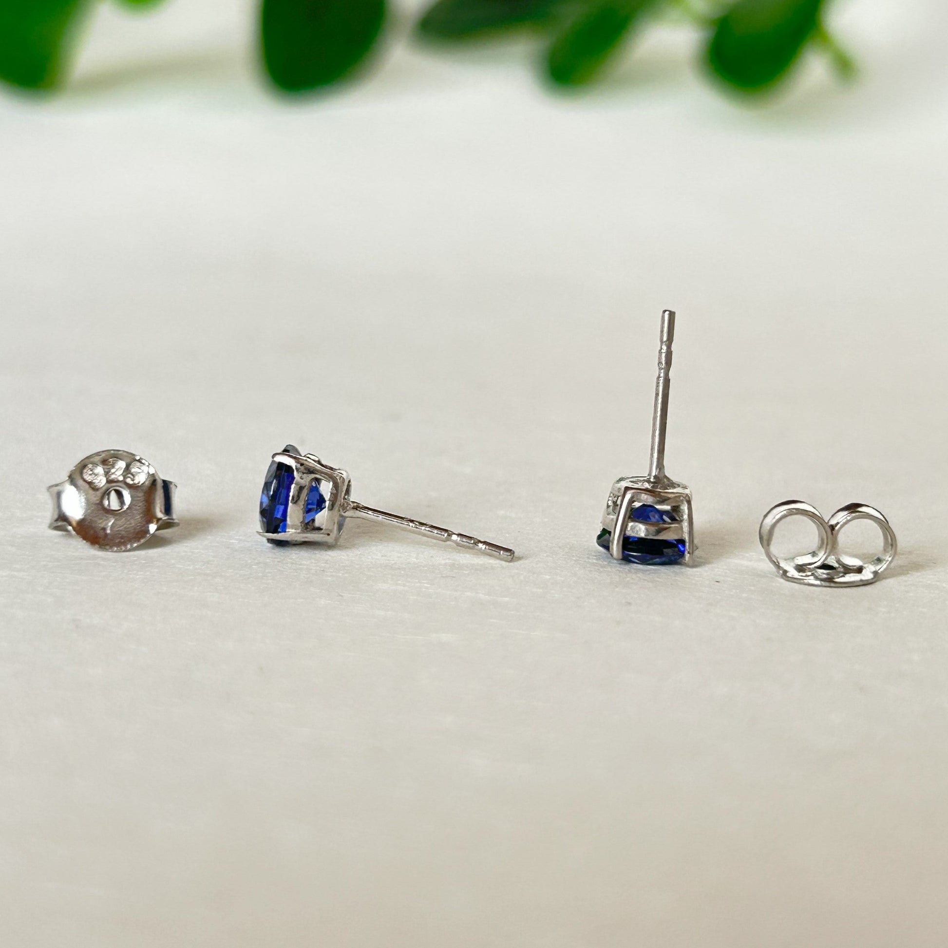 Blue Diamond Stud Earrings - Silver Earrings