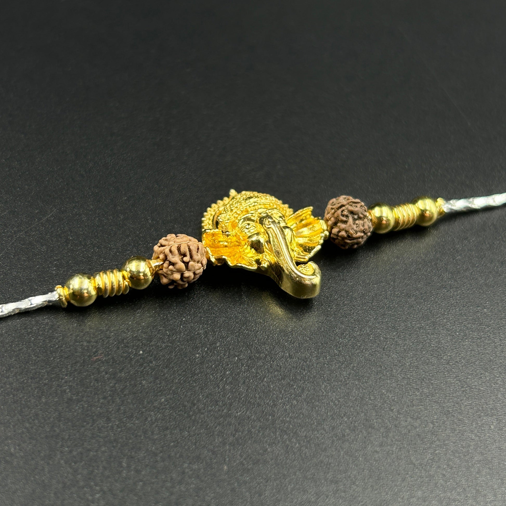Yellow Gold Ganesh Rakhi with Rudraksh