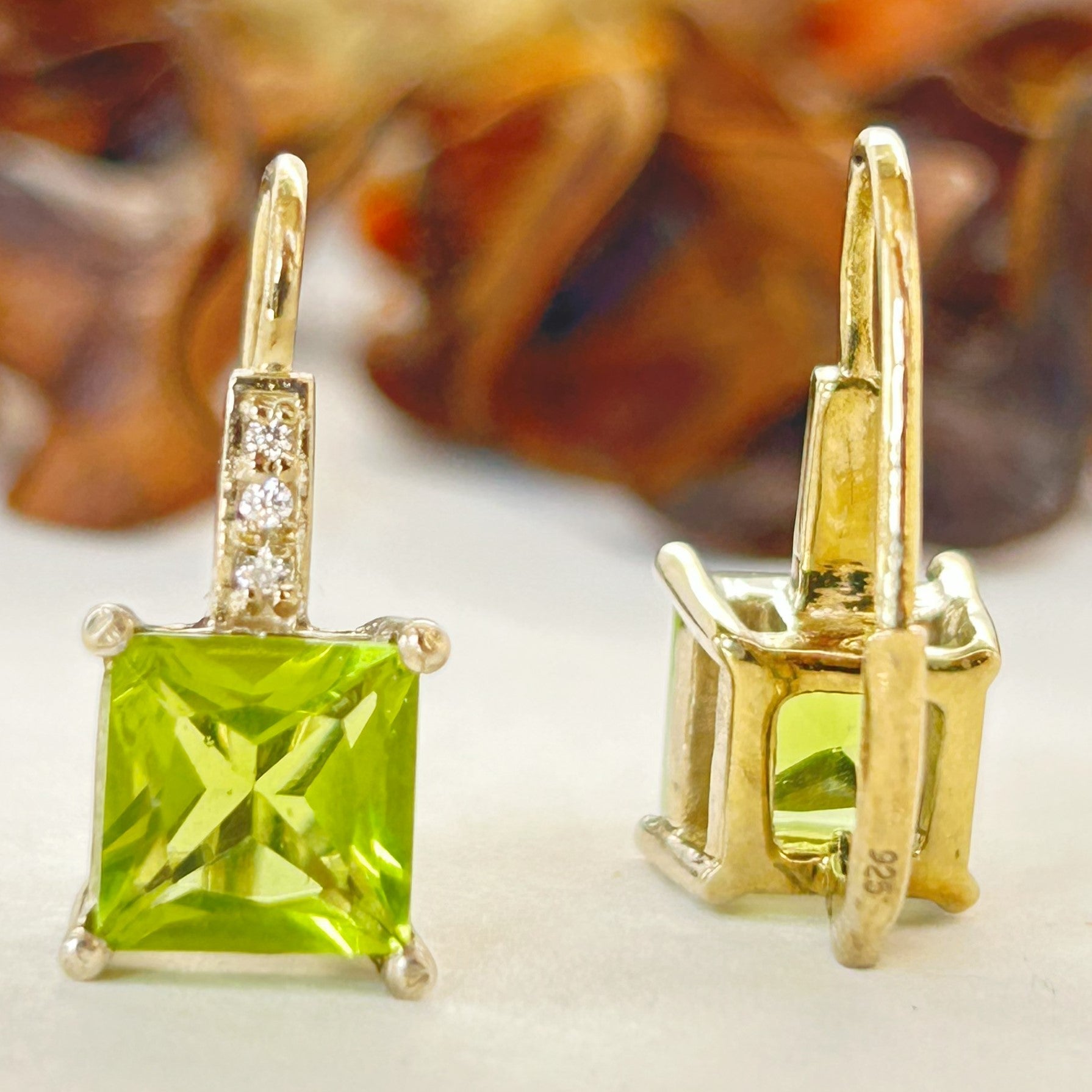 Green Peridot Earring - Silver Ziricon Earring