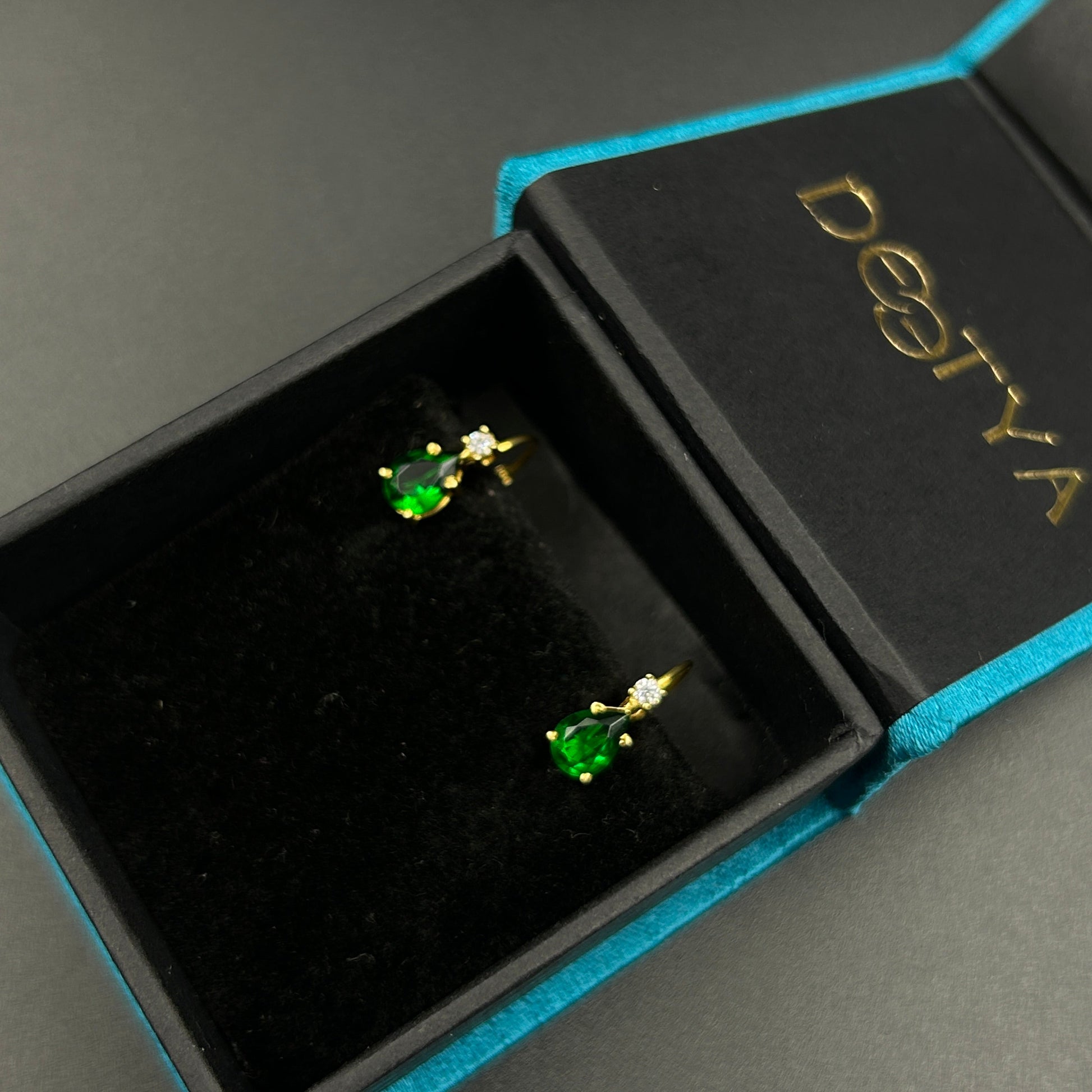 Minimal Silver Earring - Green Pear Earring