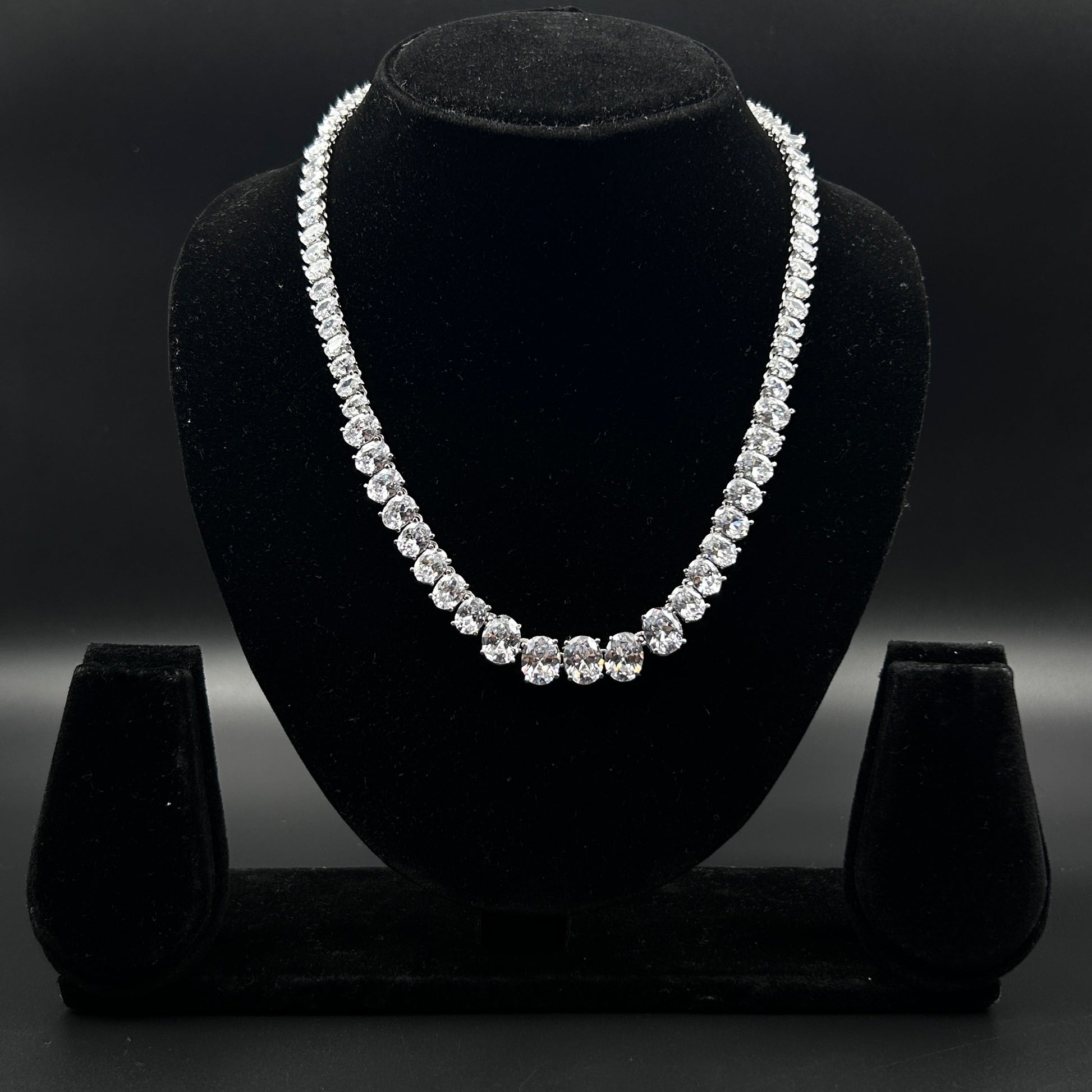 Oval Cut Daimod Necklace - Sterling Silver