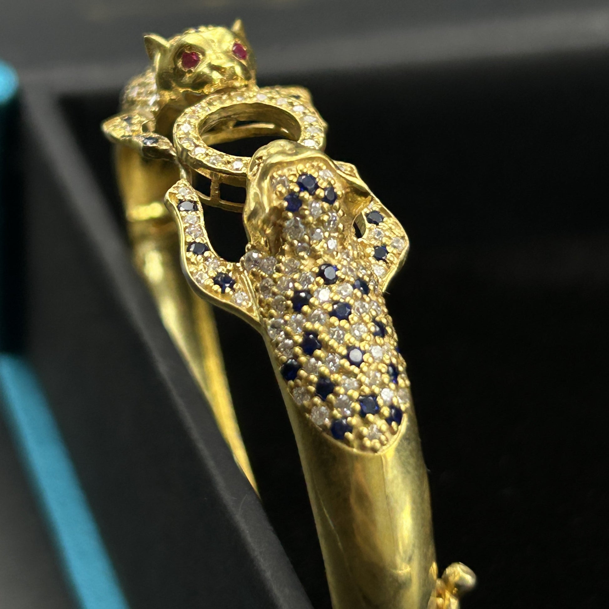 Yellow Gold Panther Kada - Silver Bracelet