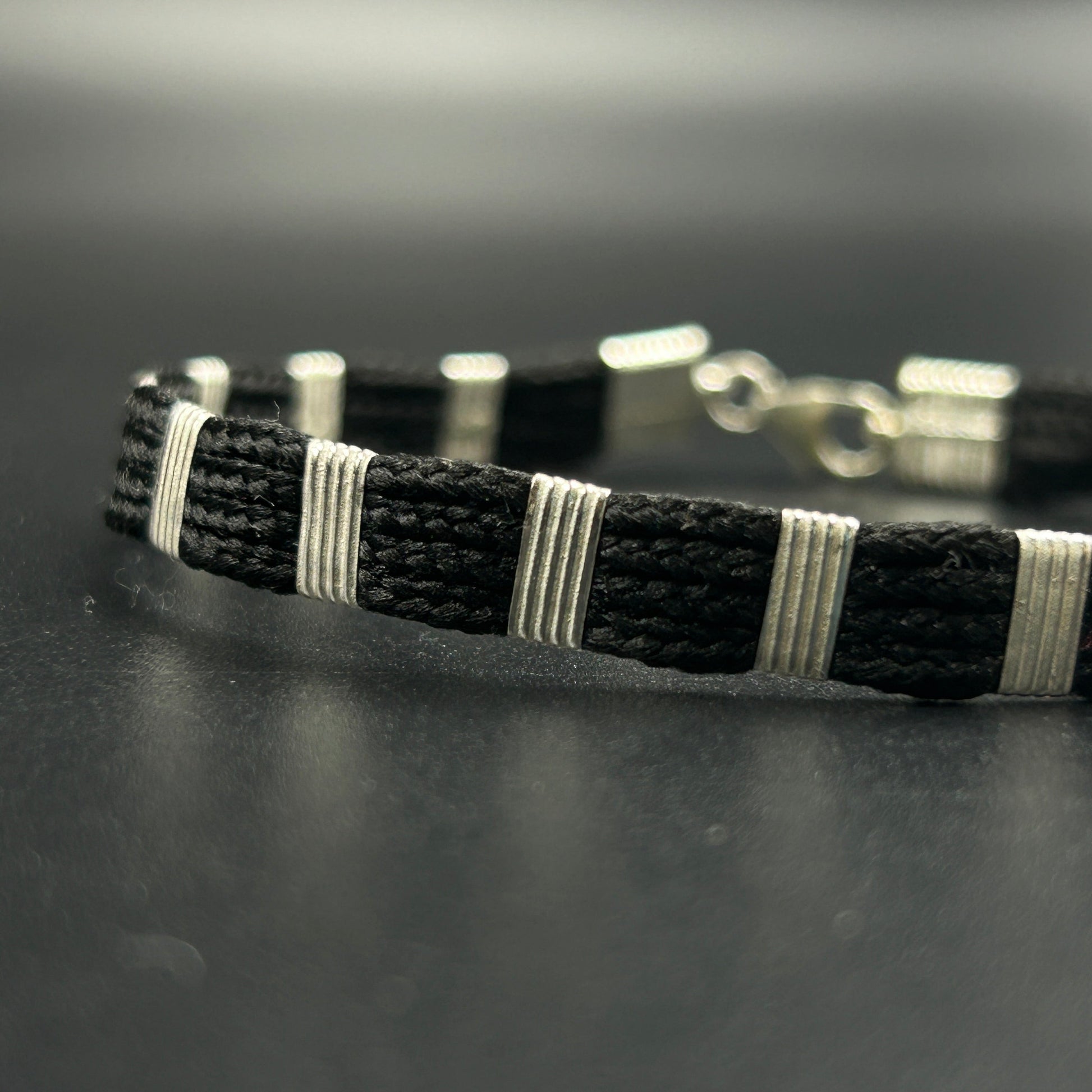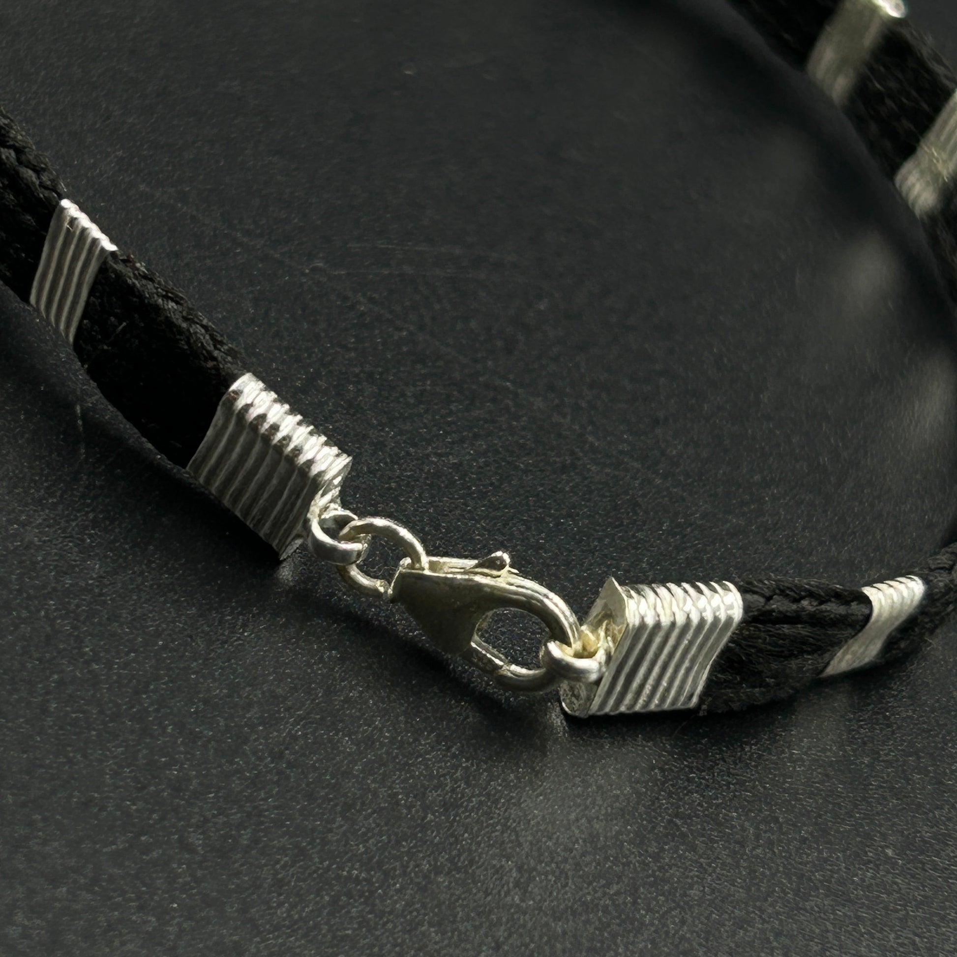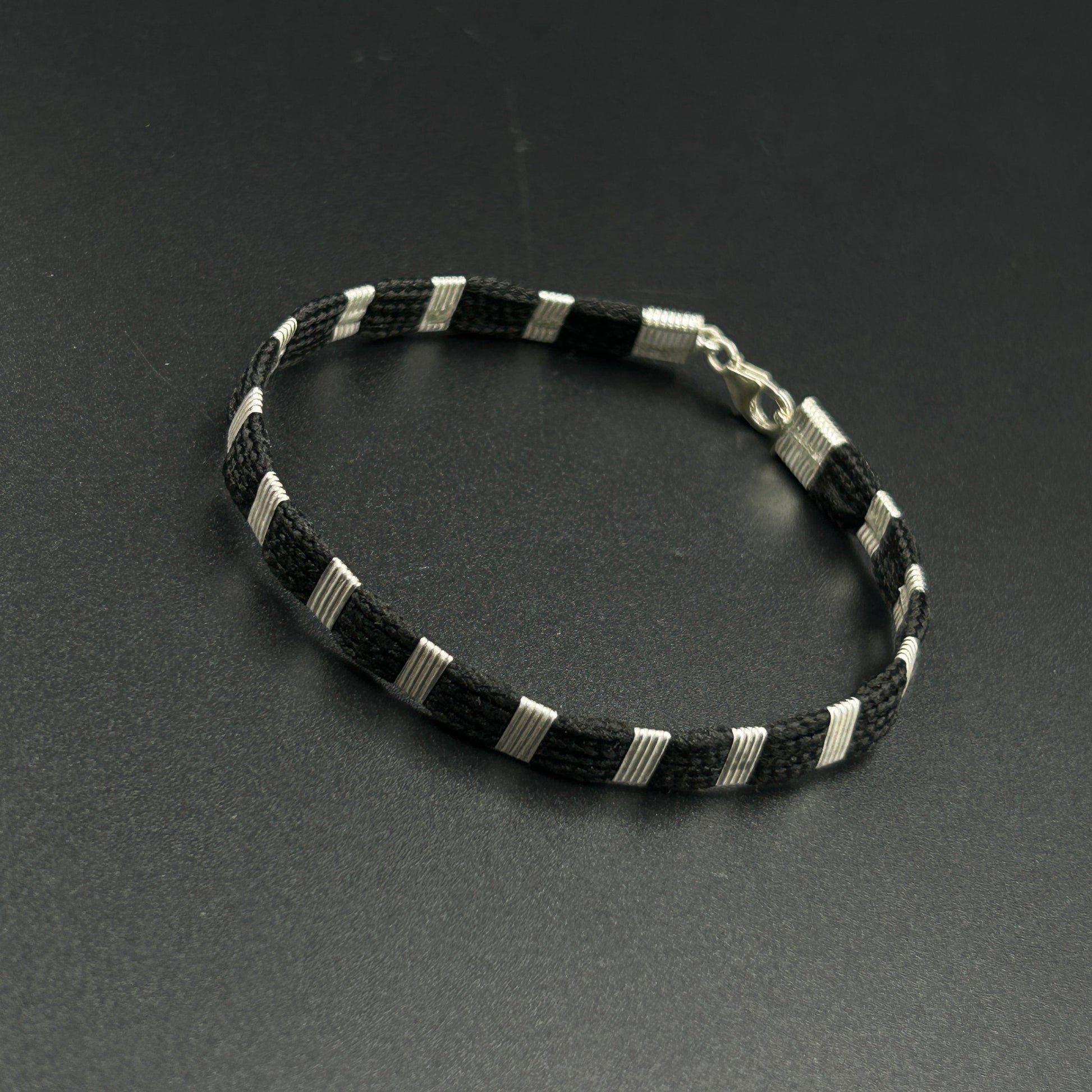 Increase quantity for Pure Silver Black Thread Bracelet 7"