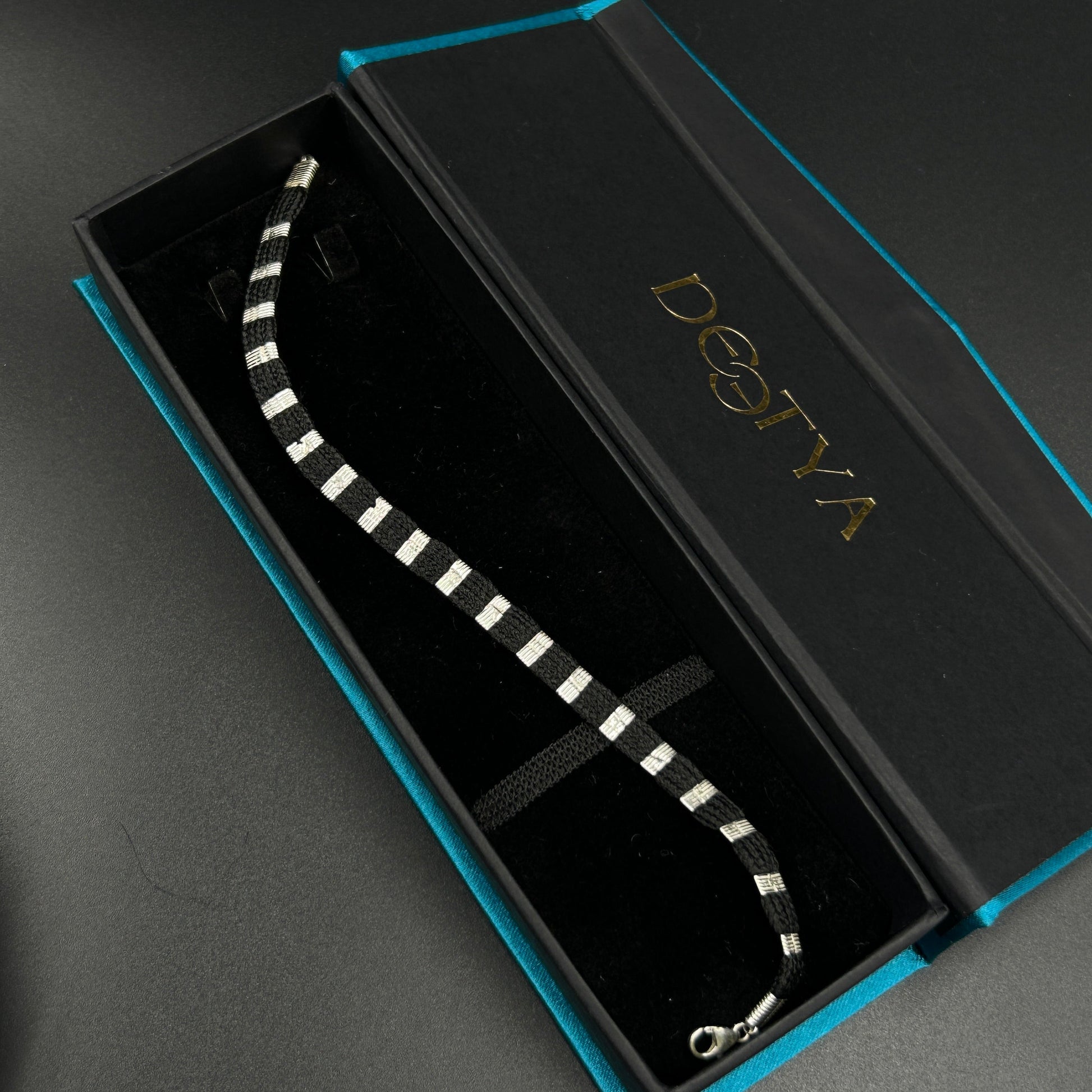 Pure Silver Black Thread Bracelet 8"