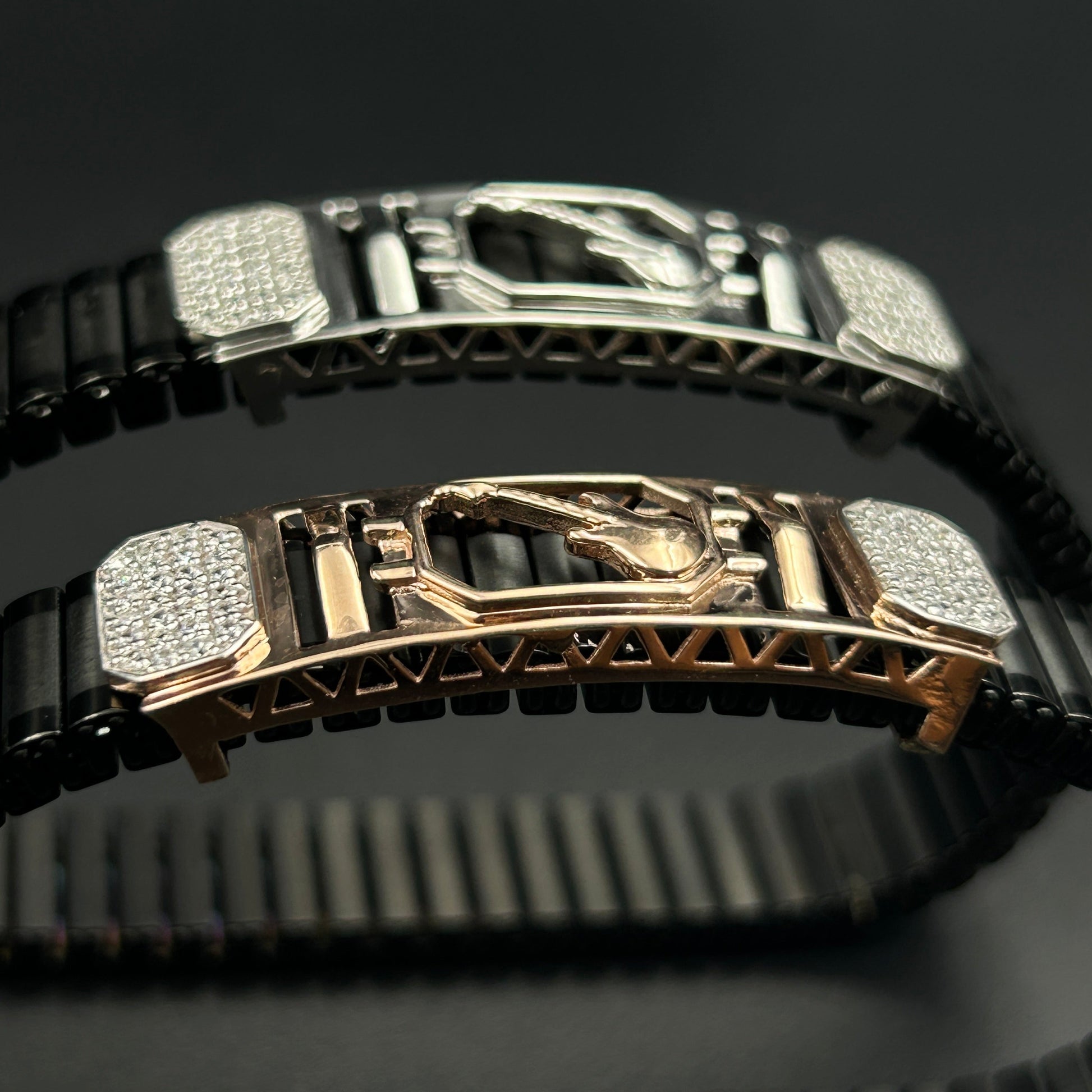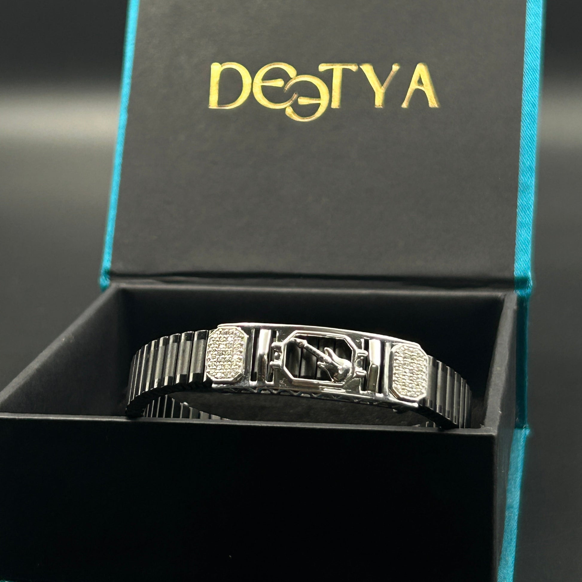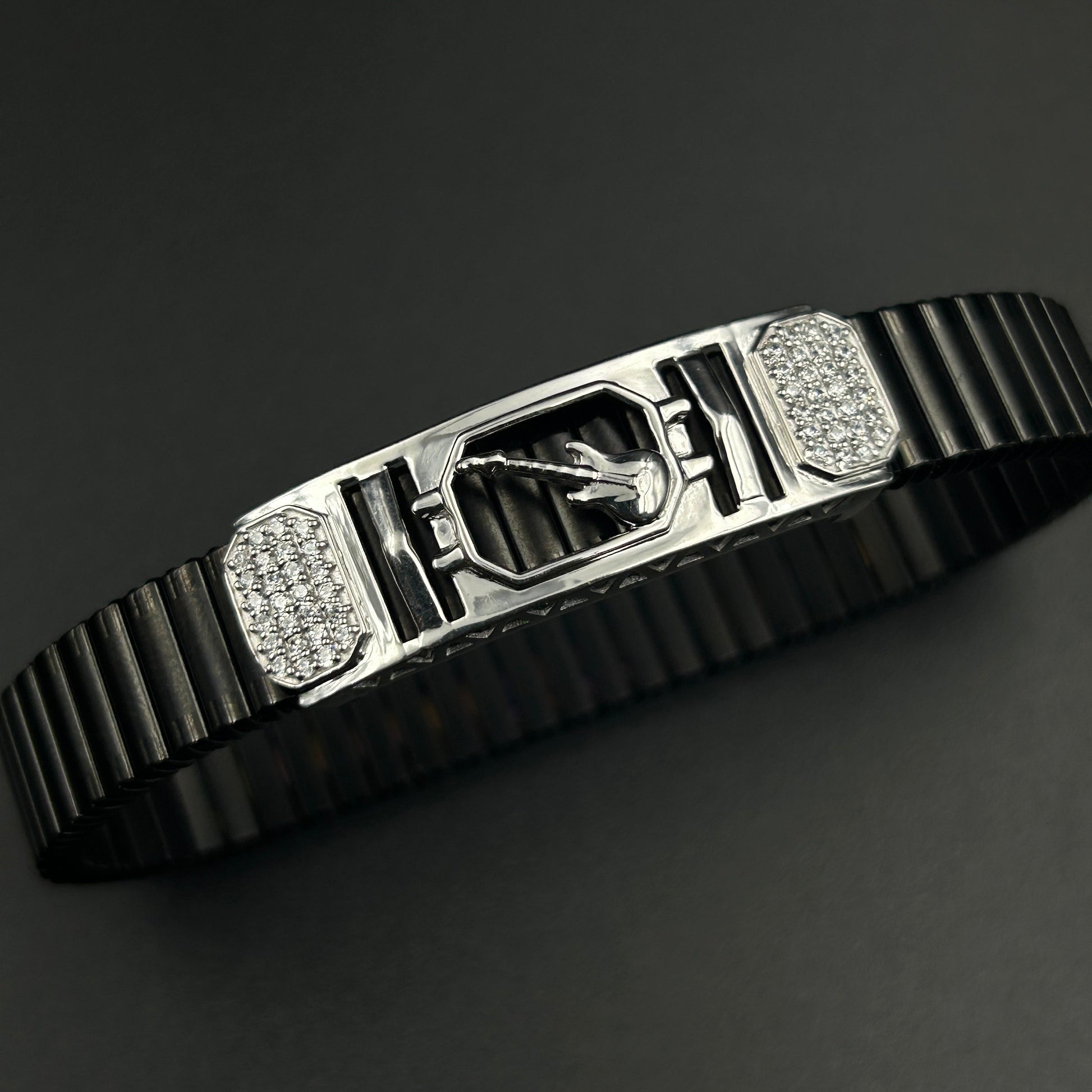 Guitar Pure Silver Men's Bracelet - Black Belt (Free Size)