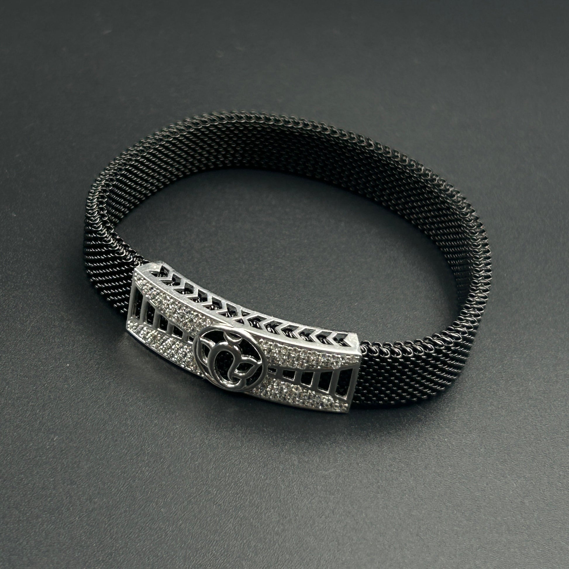 Men's Ganesh Silver Bracelet - Black Spring Belt