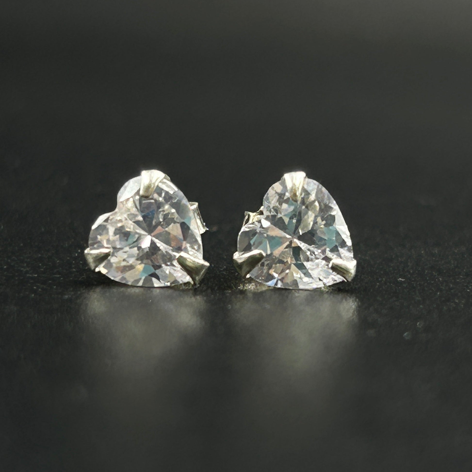 Pure Silver Stud Earrings - Heart Cut