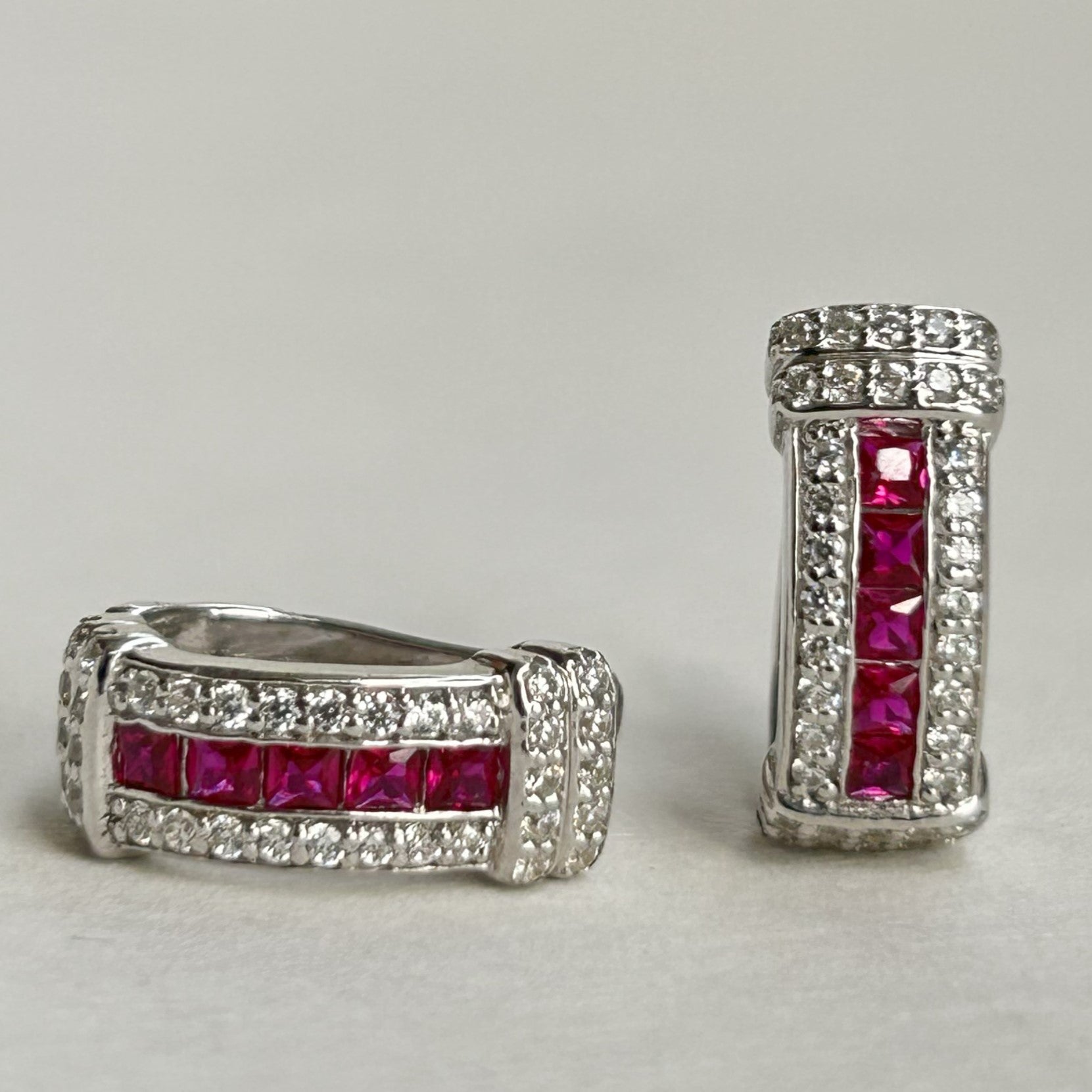 Pink Hoop Earrings - Silver Zircon Earrings