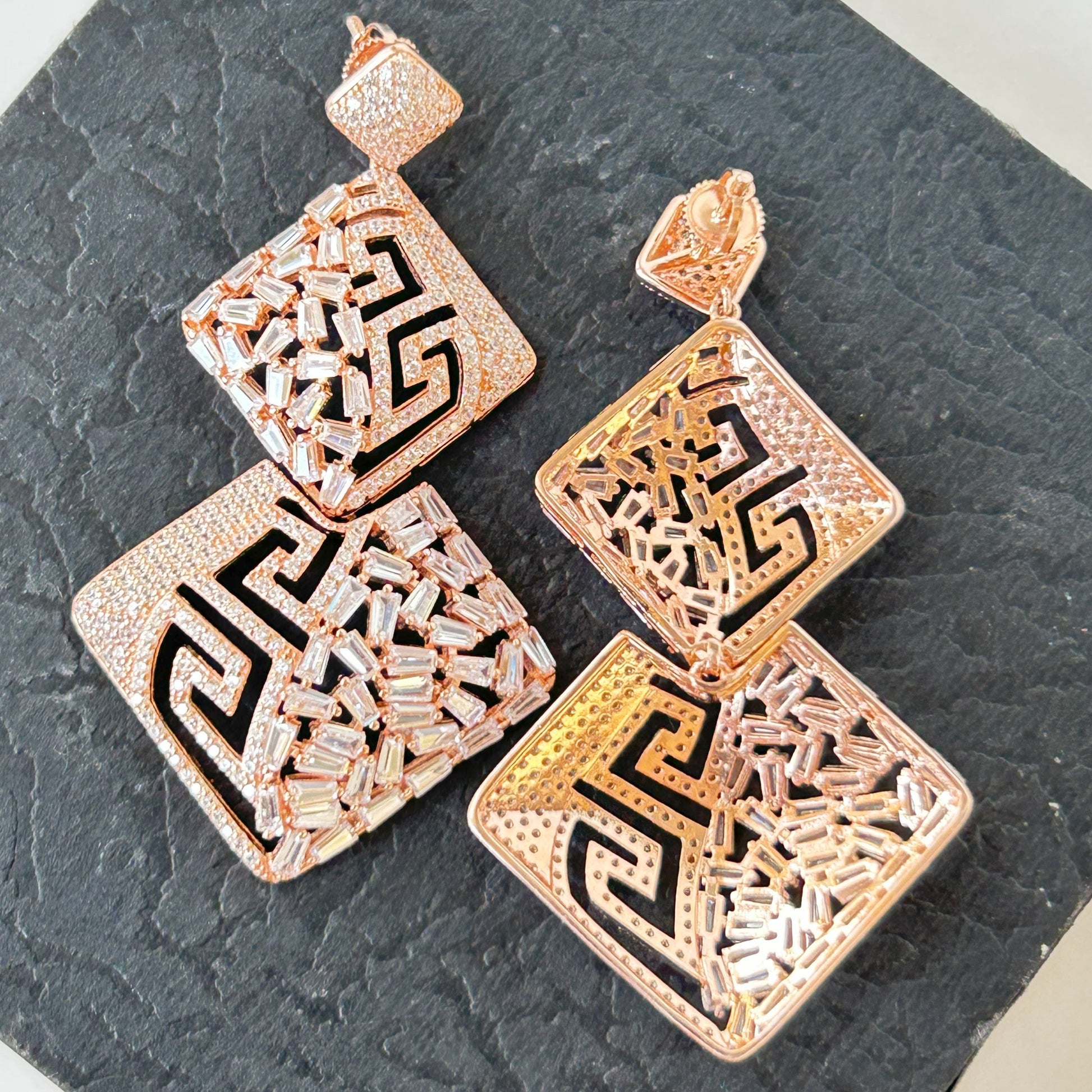 Increase quantity for Rose Gold Baguette cut Earring - Silver Earring