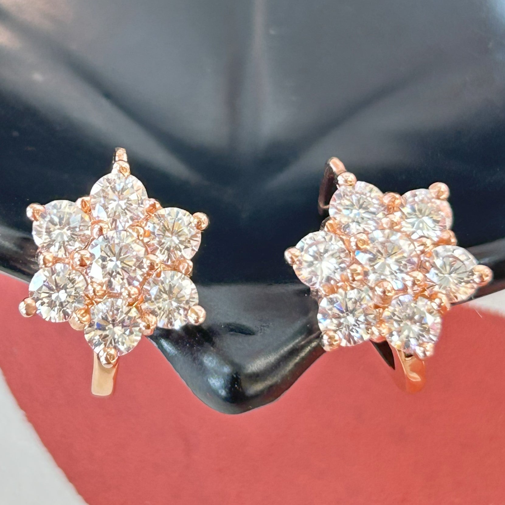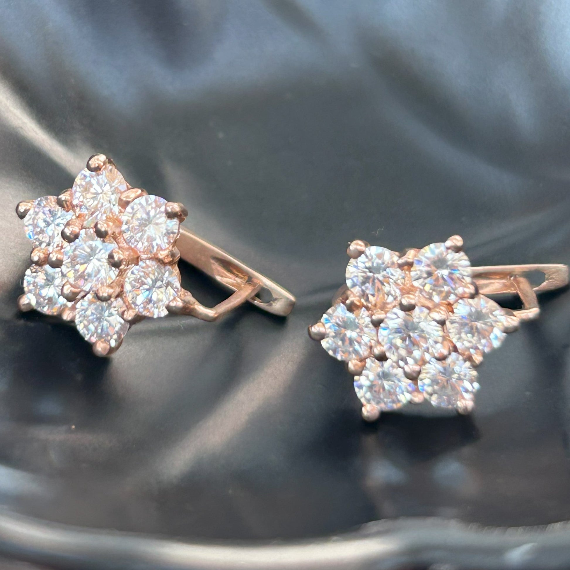 Rose Gold Floral Earring - Silver Zircon Earrings