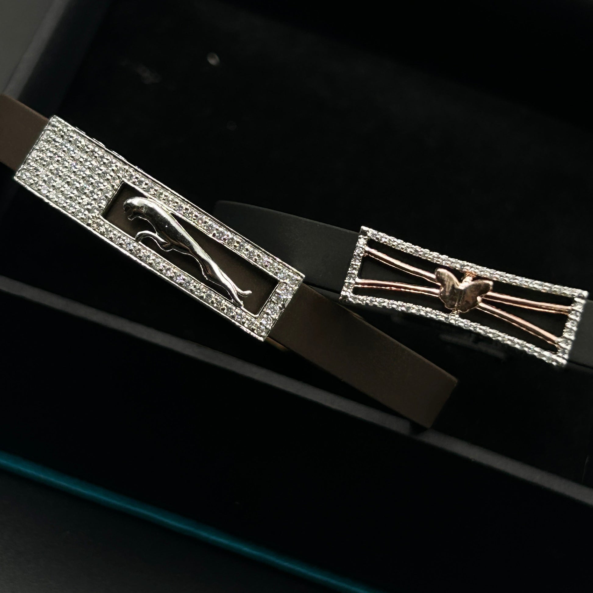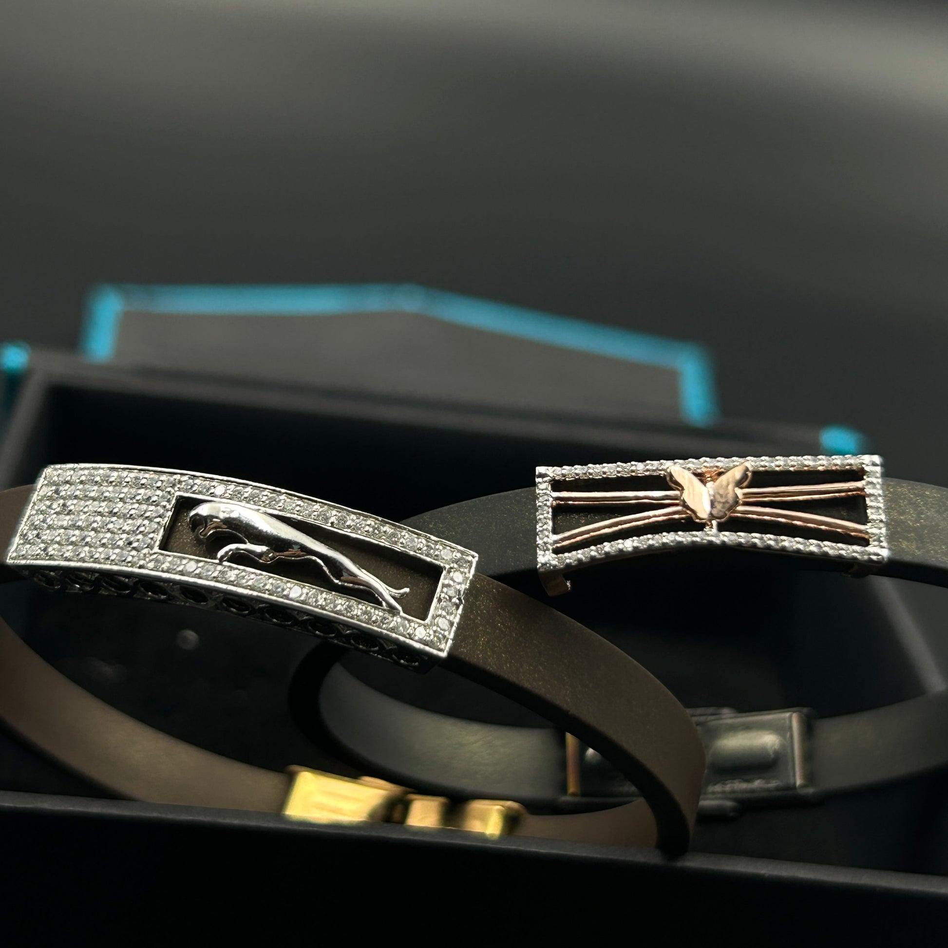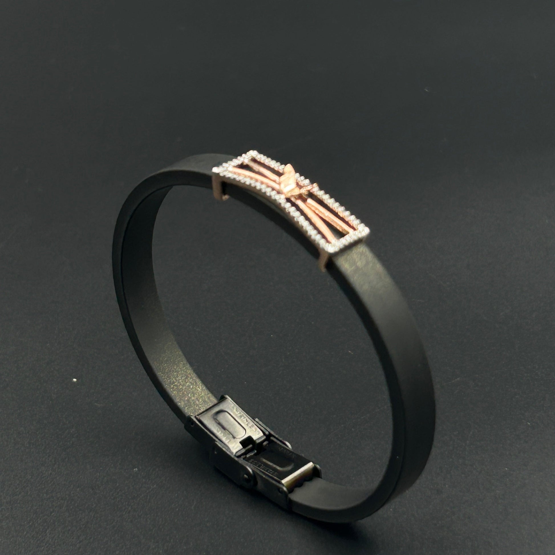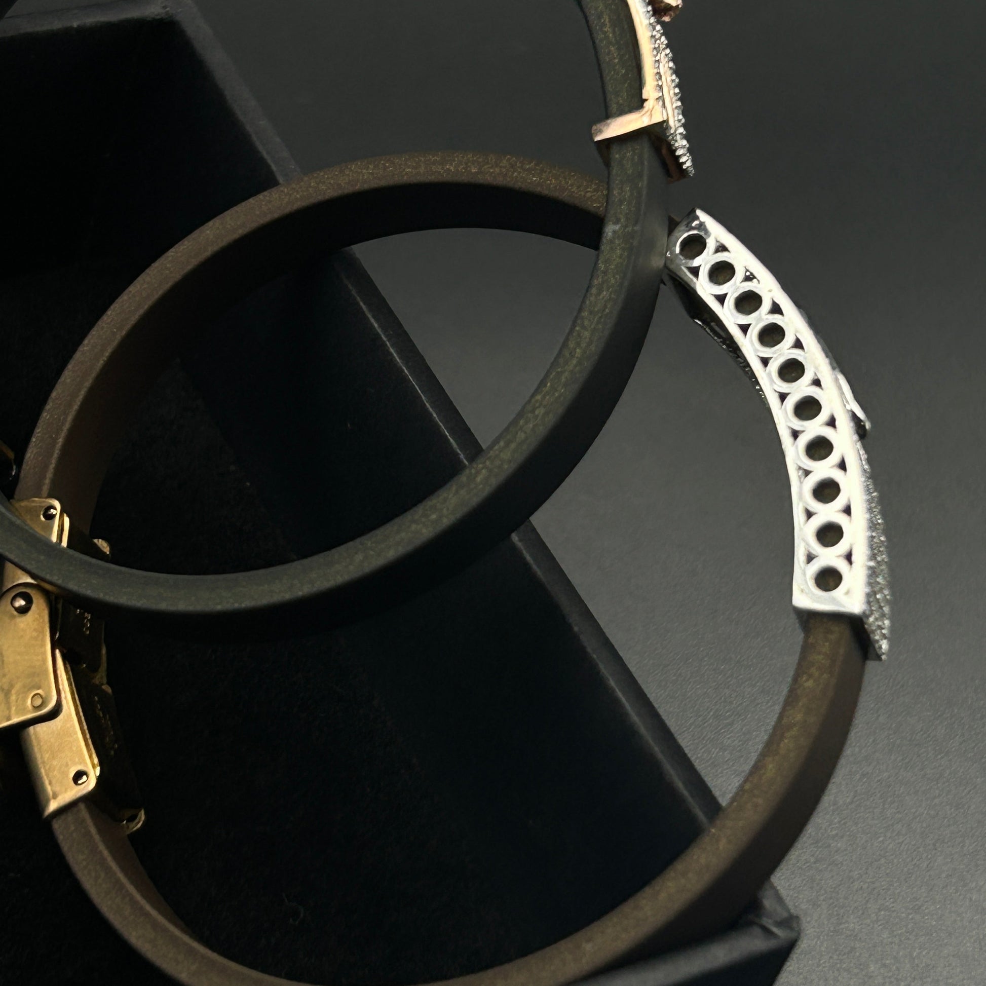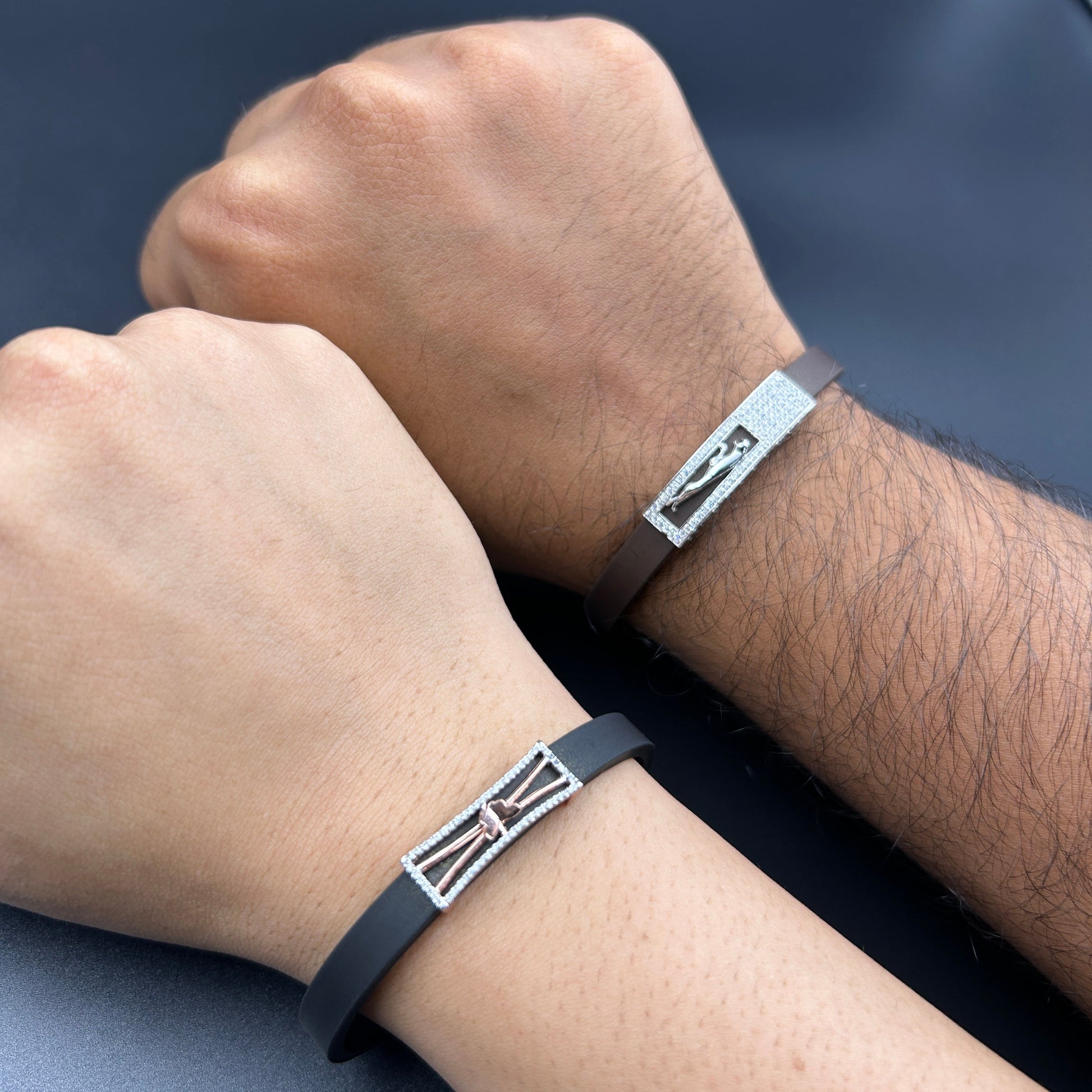 Rose Gold Pure Silver Couple Bracelet - Brown Band