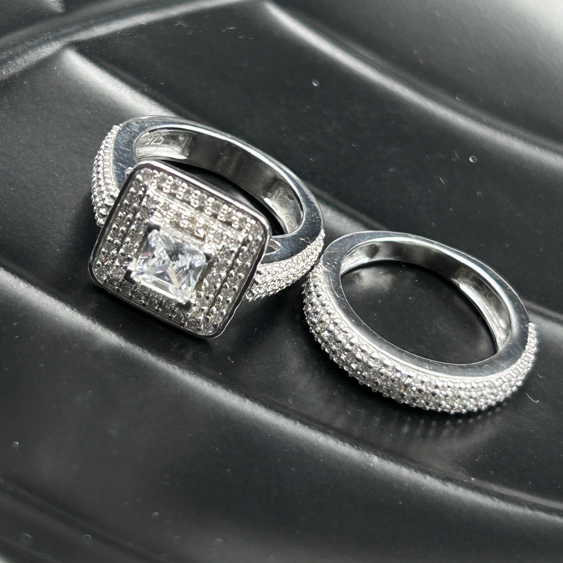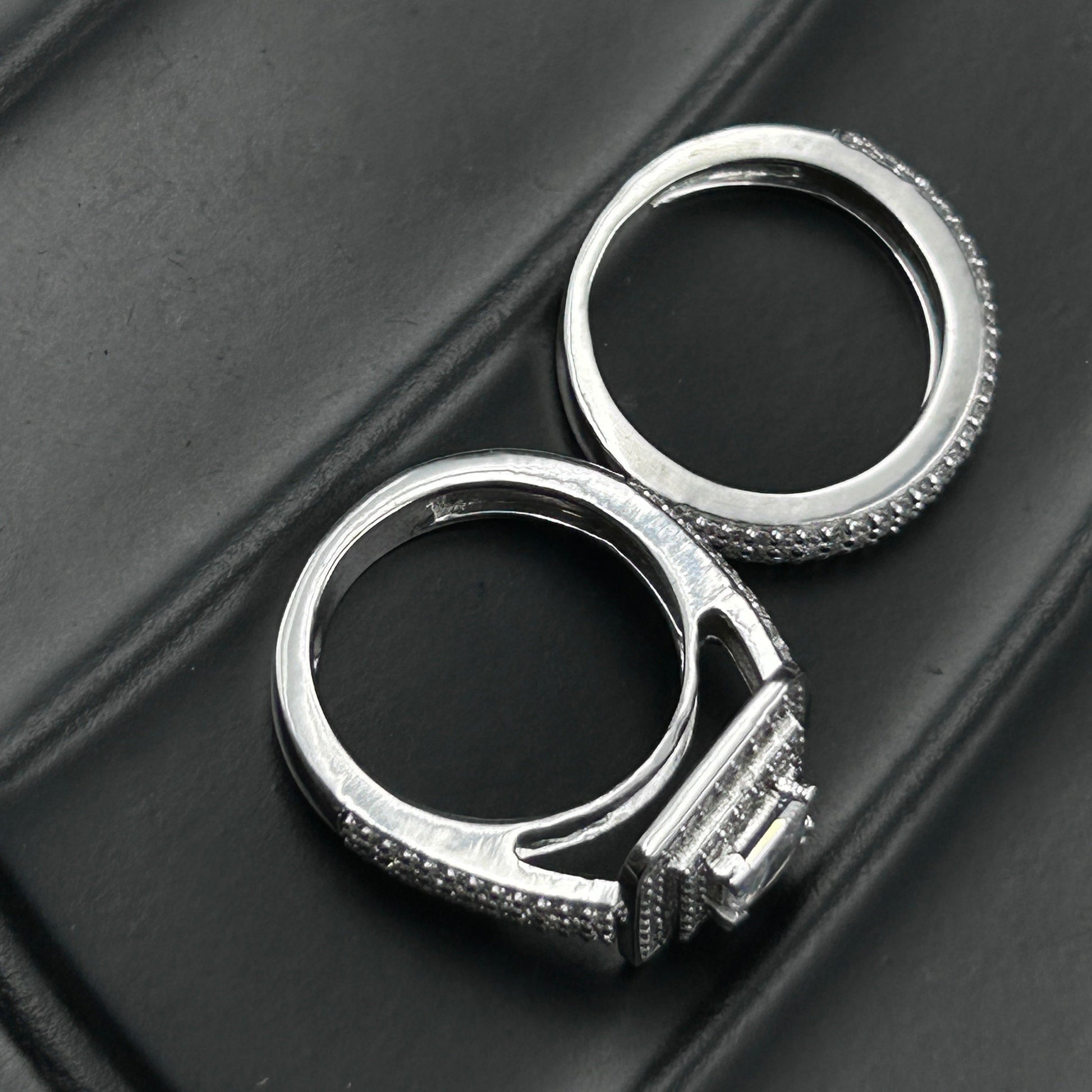 Silver Bridal Ring Set - Women's Engagement Ring Set