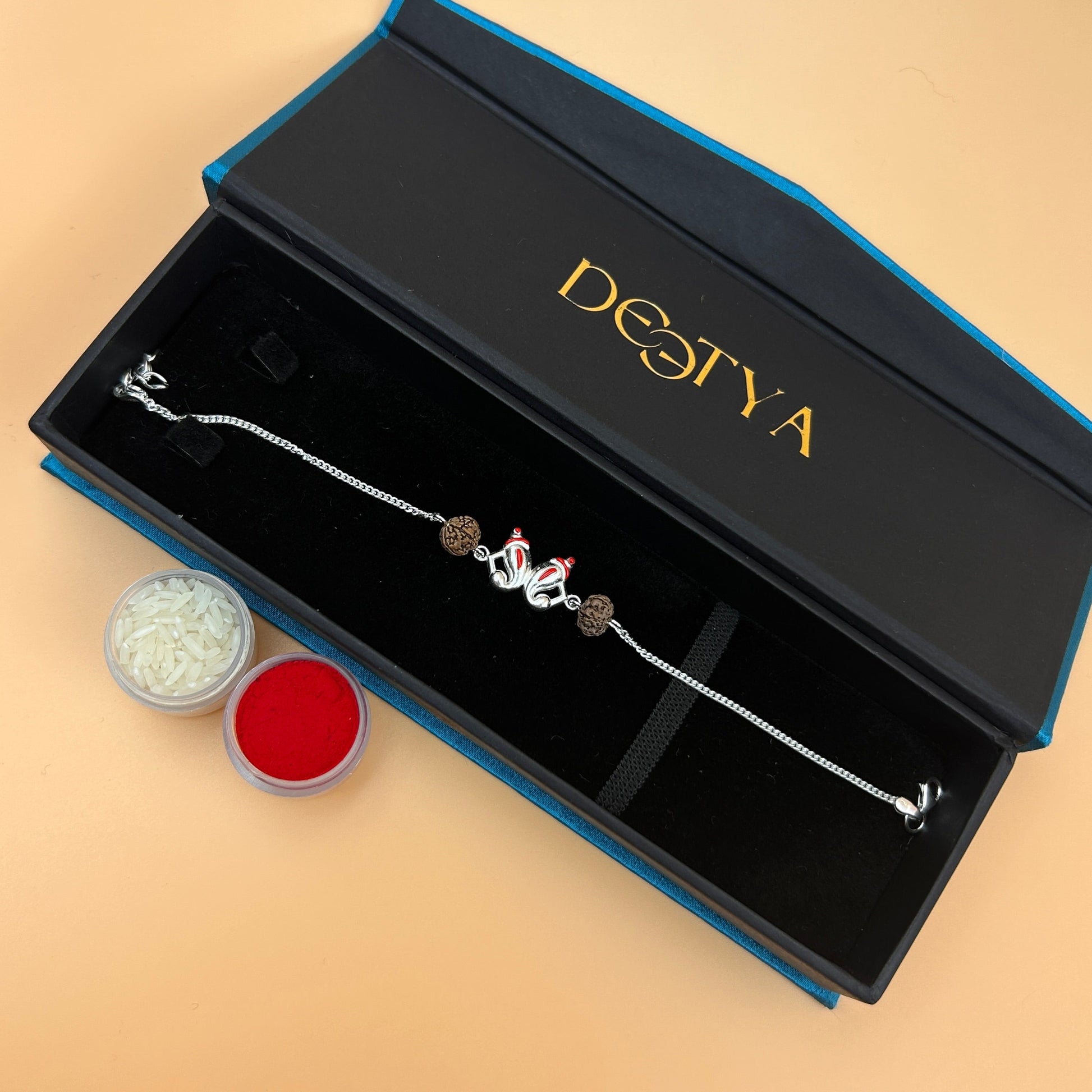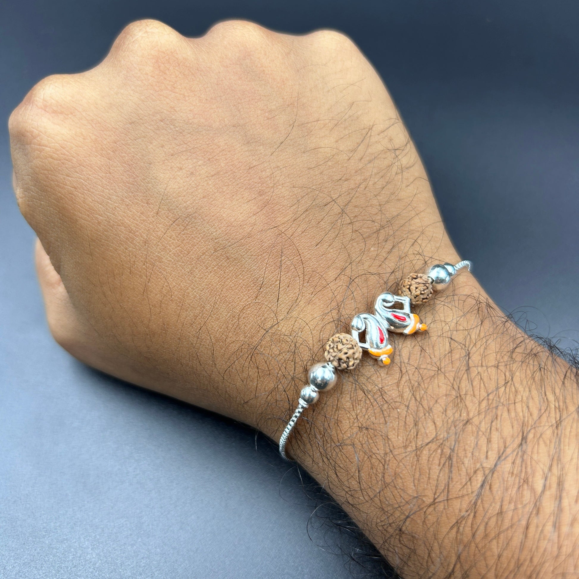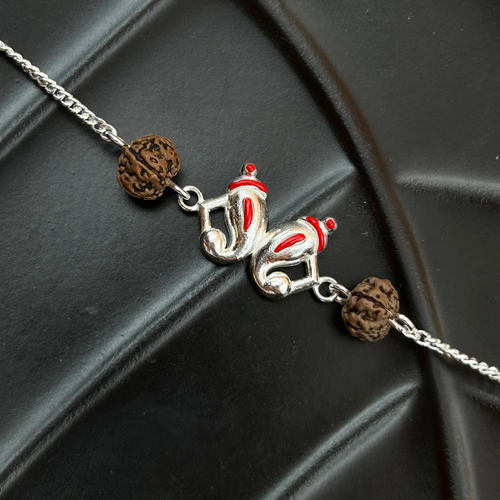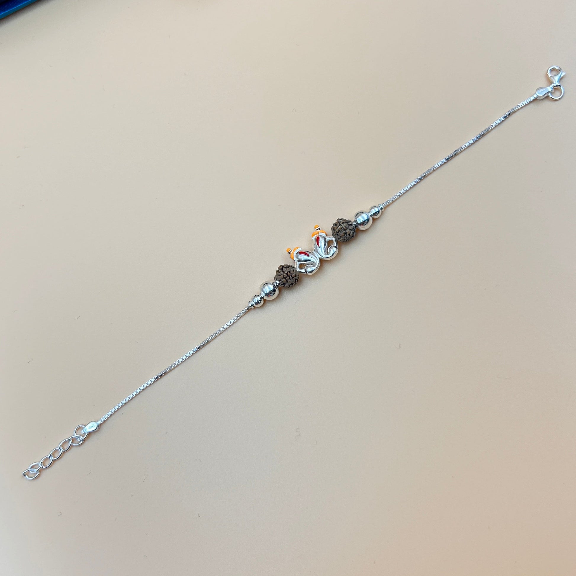 Silver Ganesh Rakhi with Rudraksh