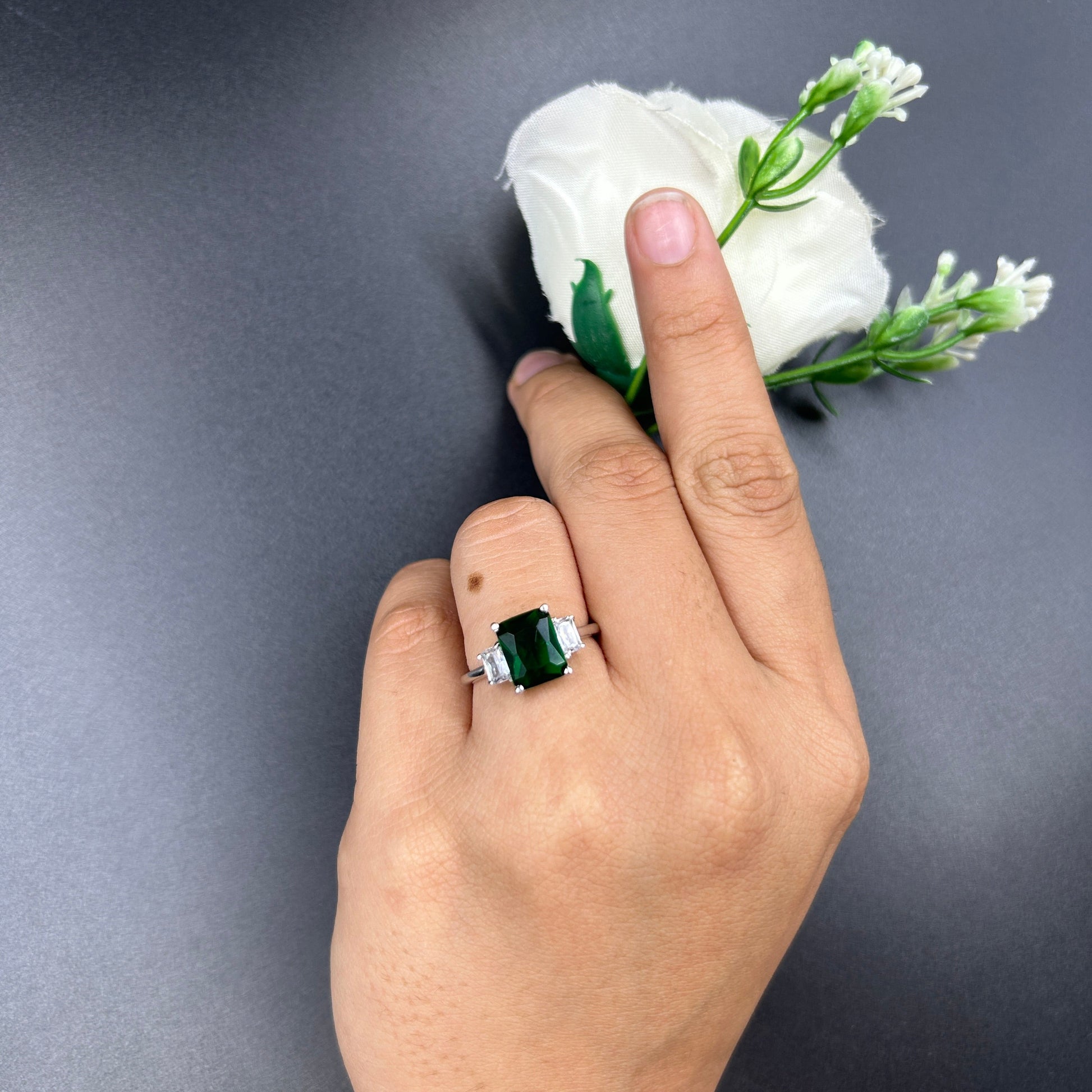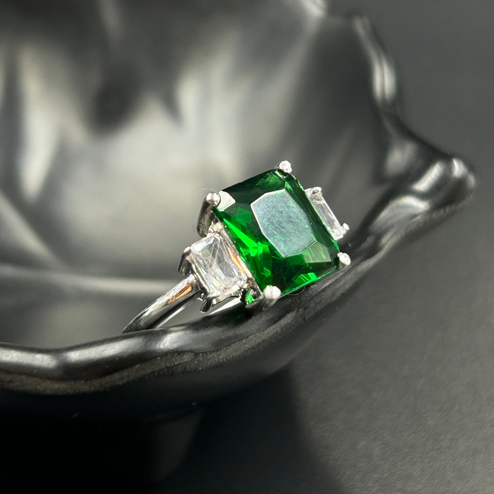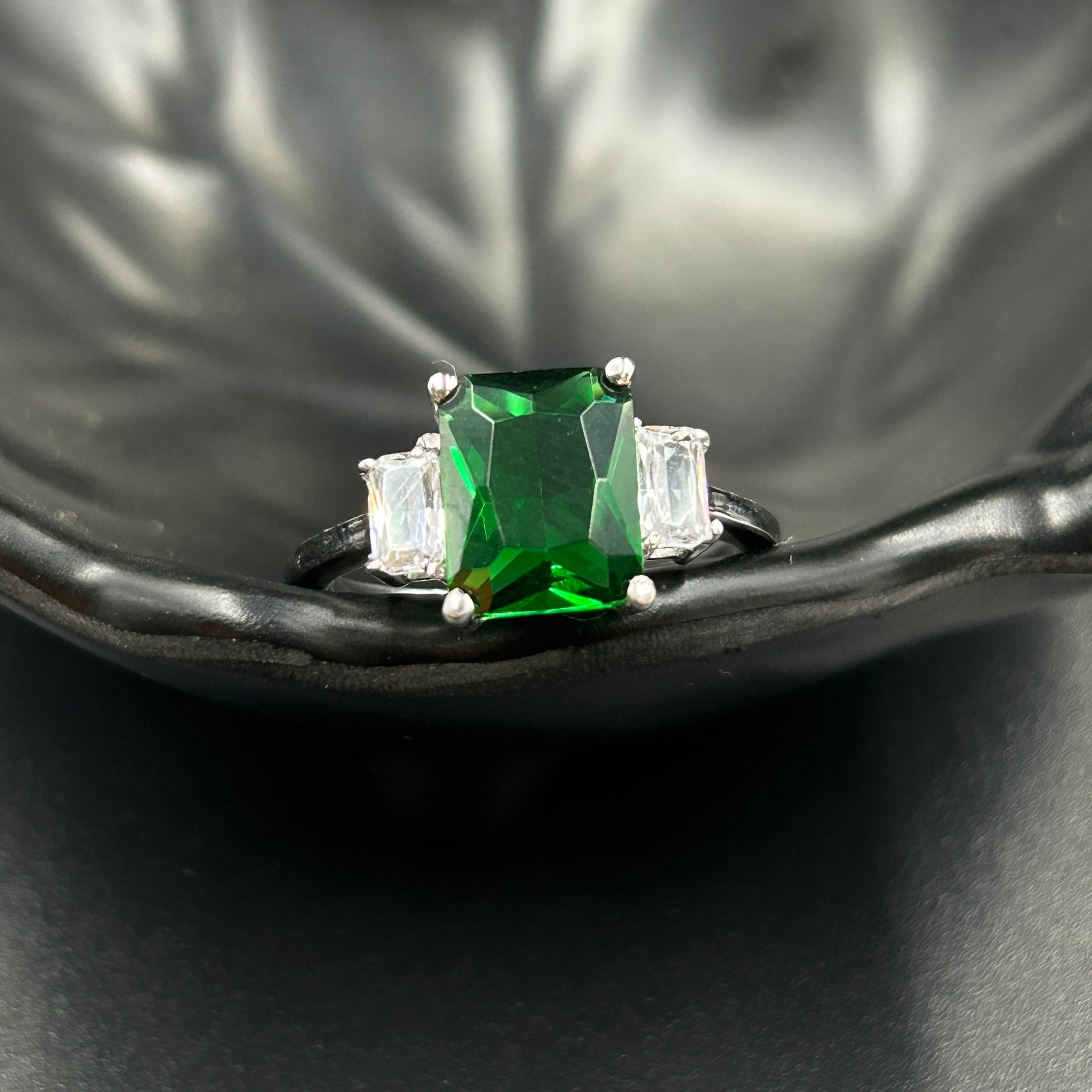 Silver Green Diamond Ring - Women's Ring