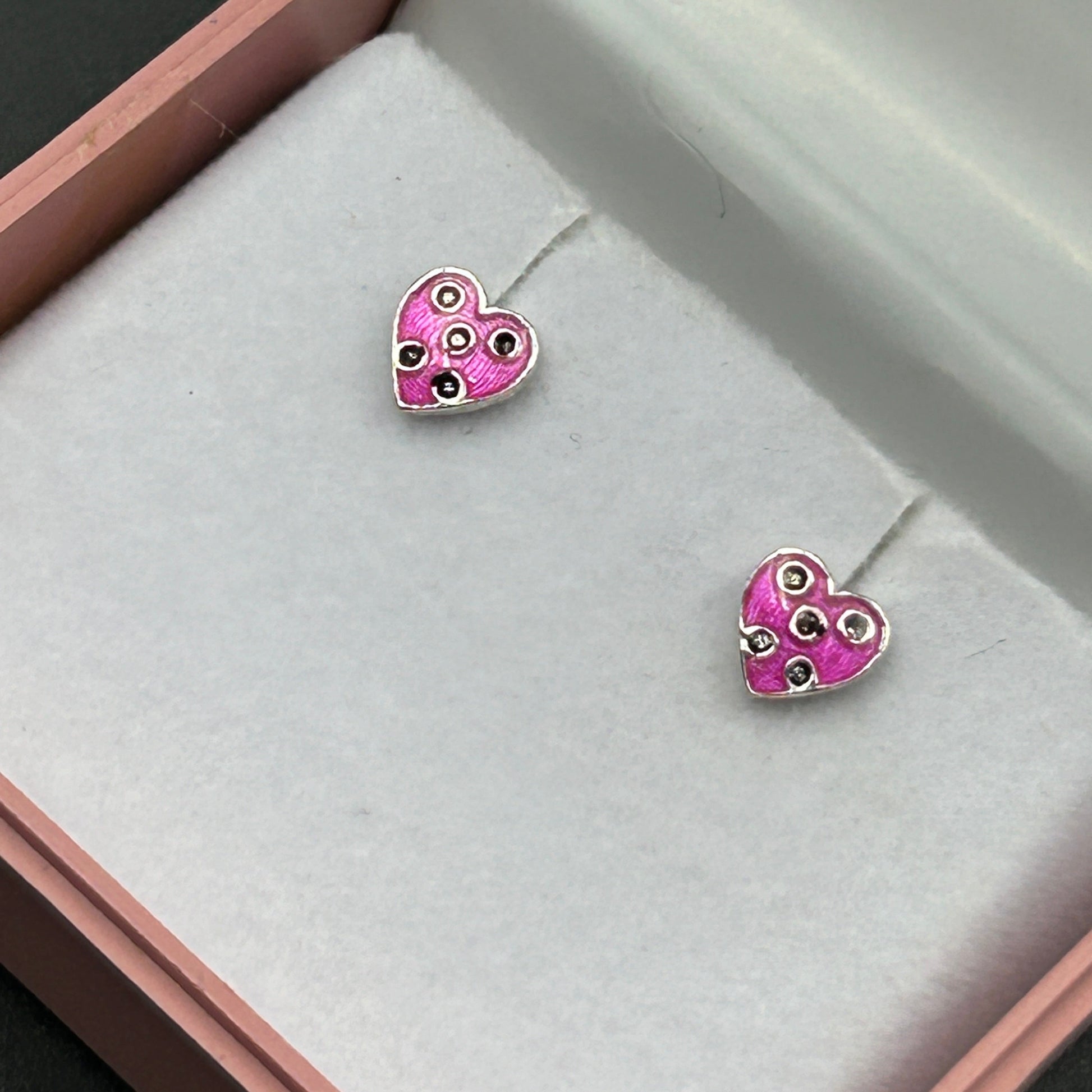 Silver Heart Earring - Pink Heart Studs