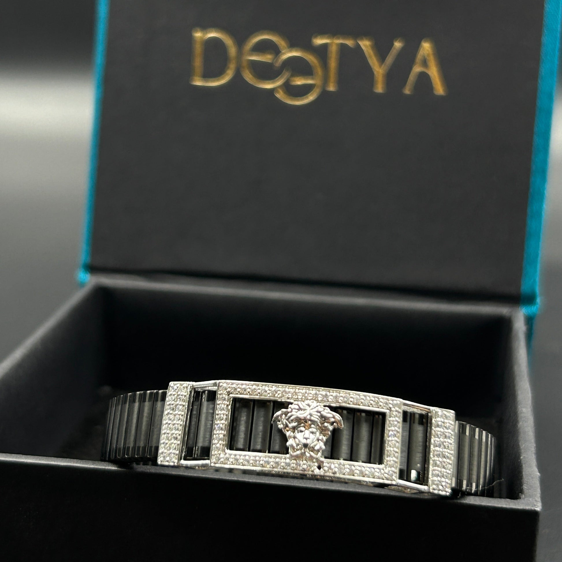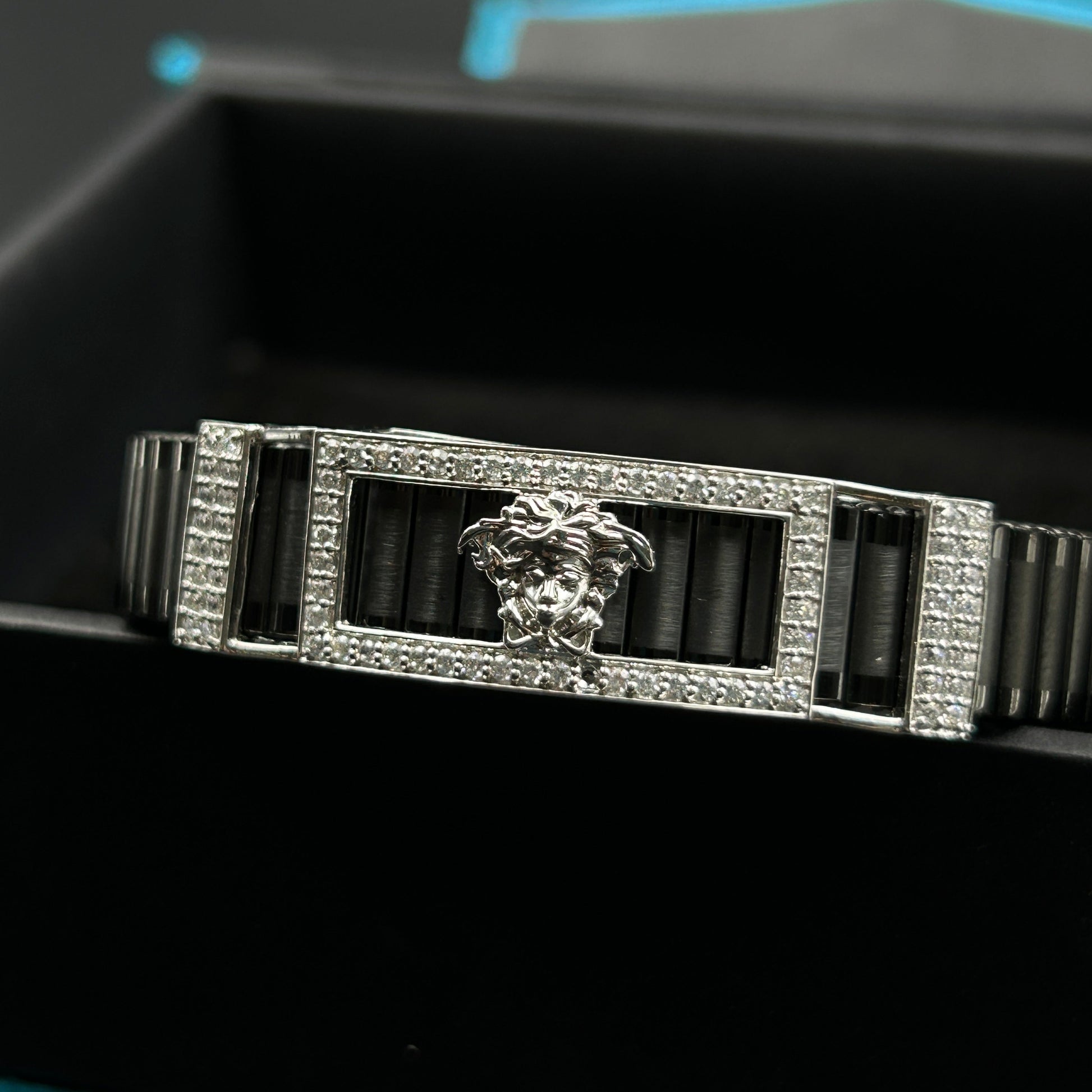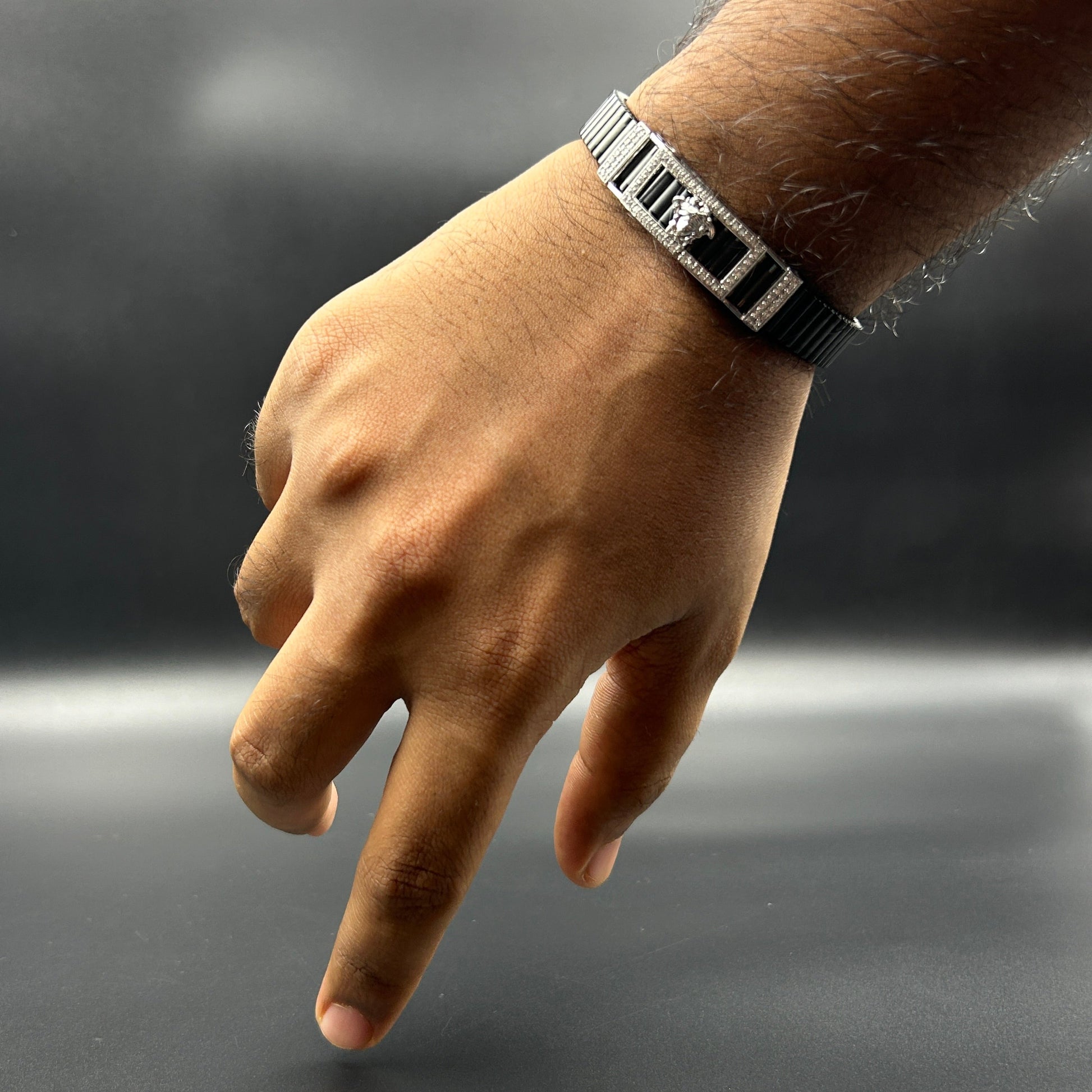 Silver Men's Bracelet - Black Belt