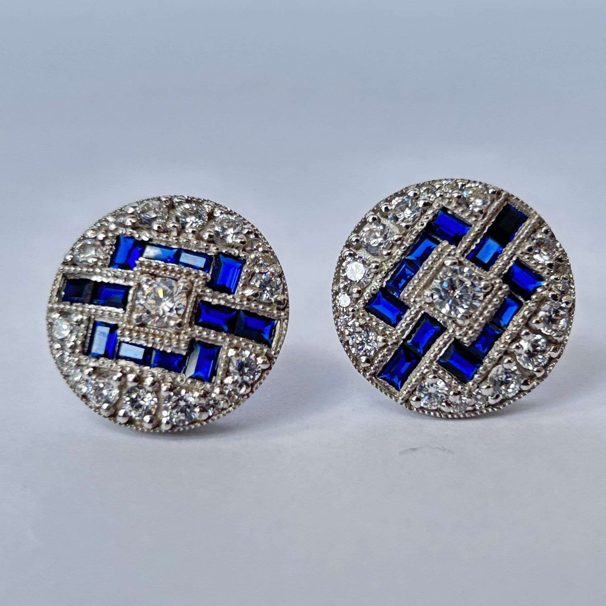 Increase quantity for Vintage Earring - Blue Sapphire Silver Earring