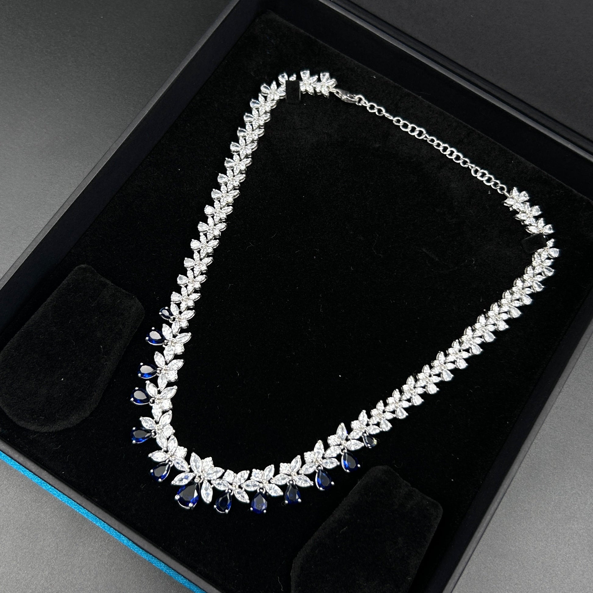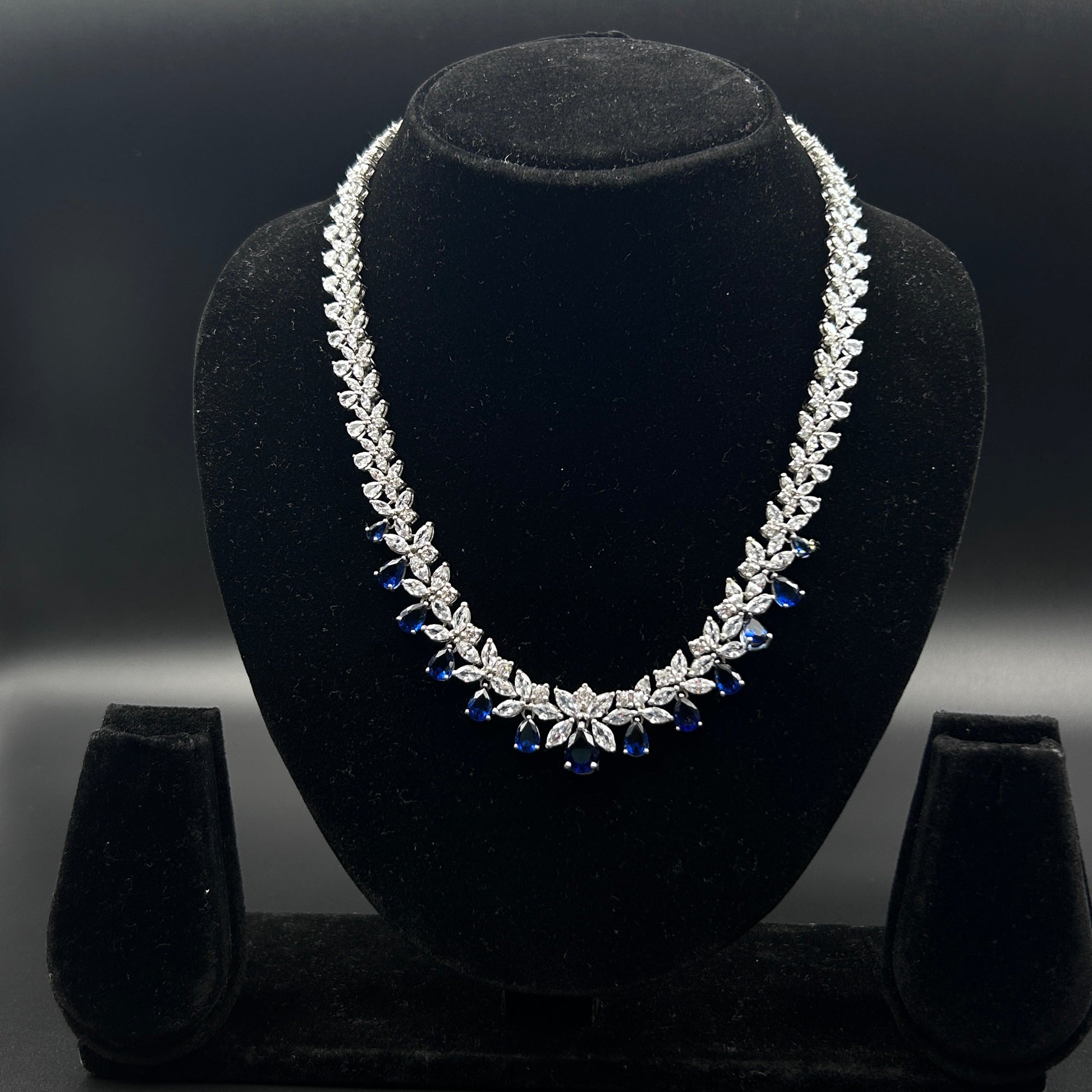 Women's Floral Blue Sapphire Necklace - Pure Silver