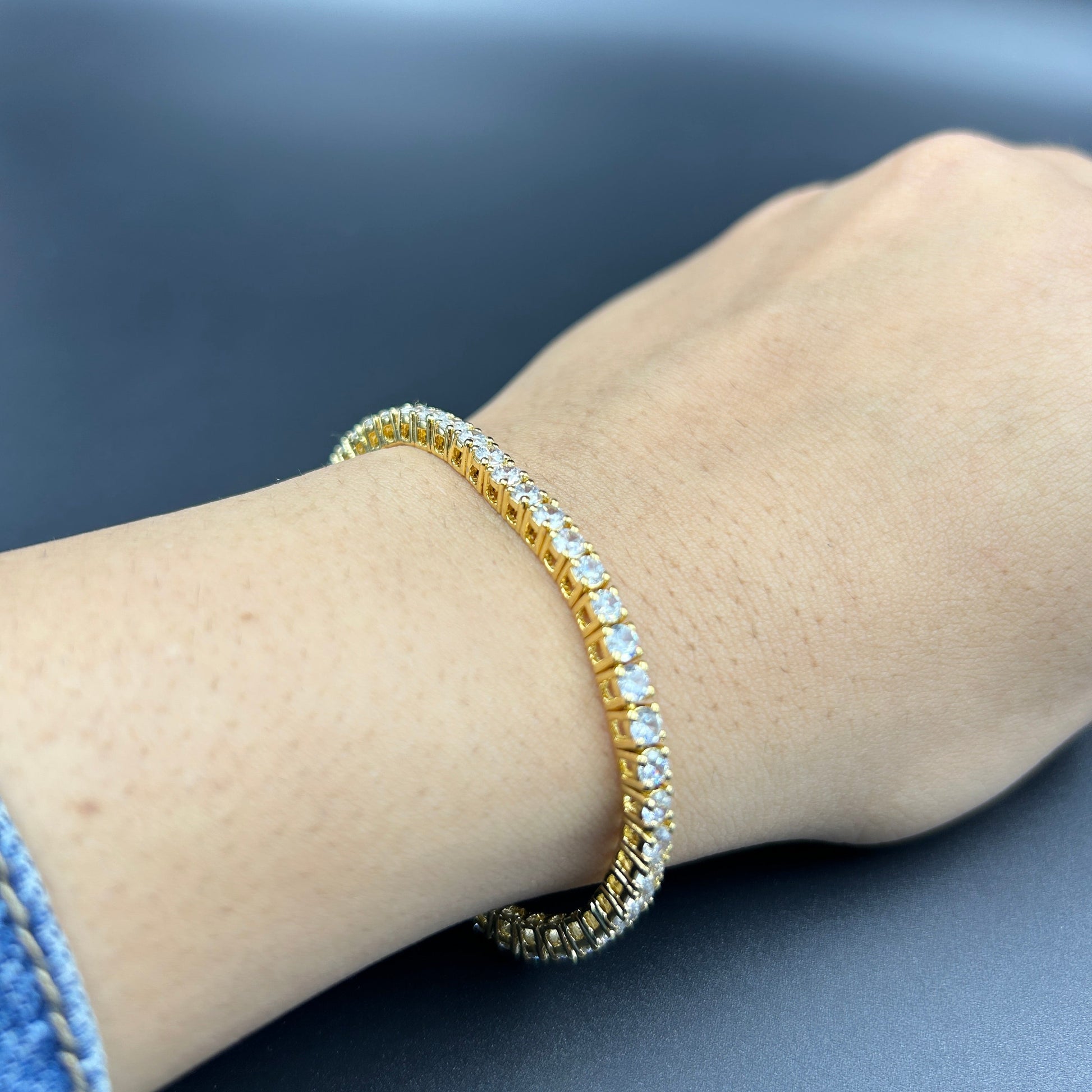 Yellow Gold Silver Bracelet - Solitaire Bracelet
