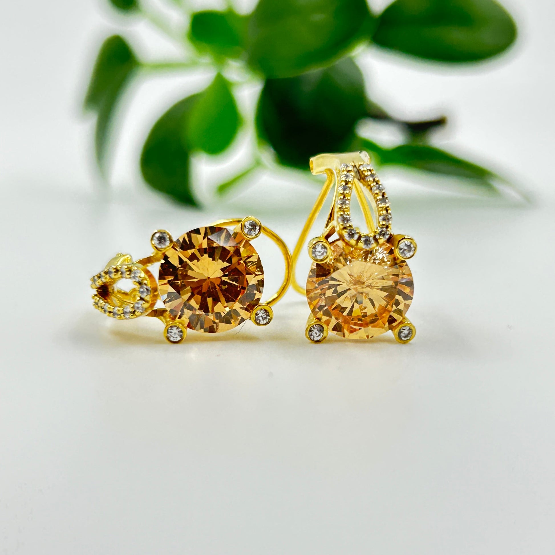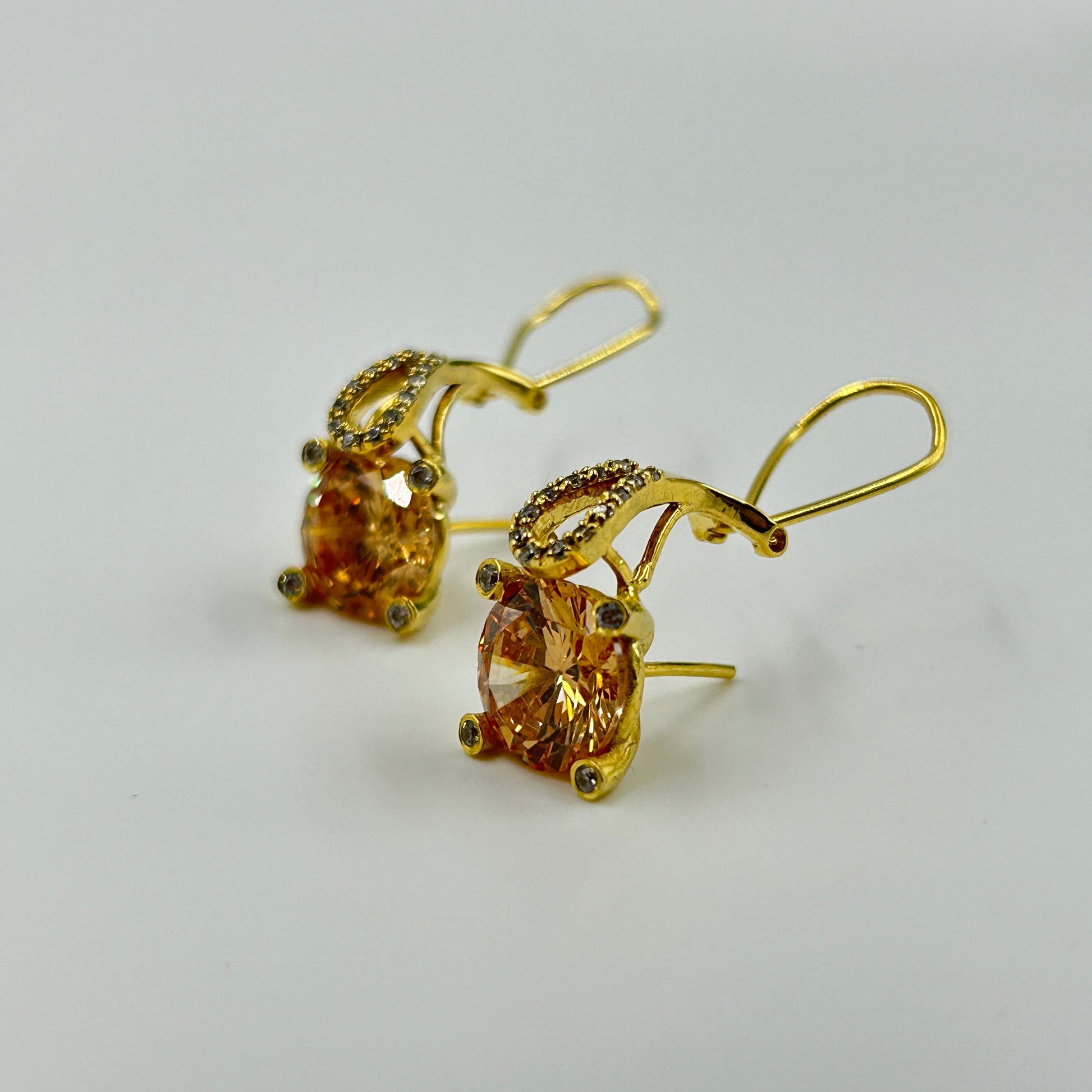 Yellow Sapphire Earring - Silver Zircon Earring